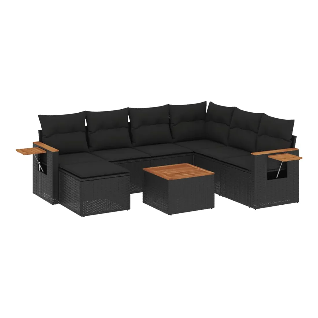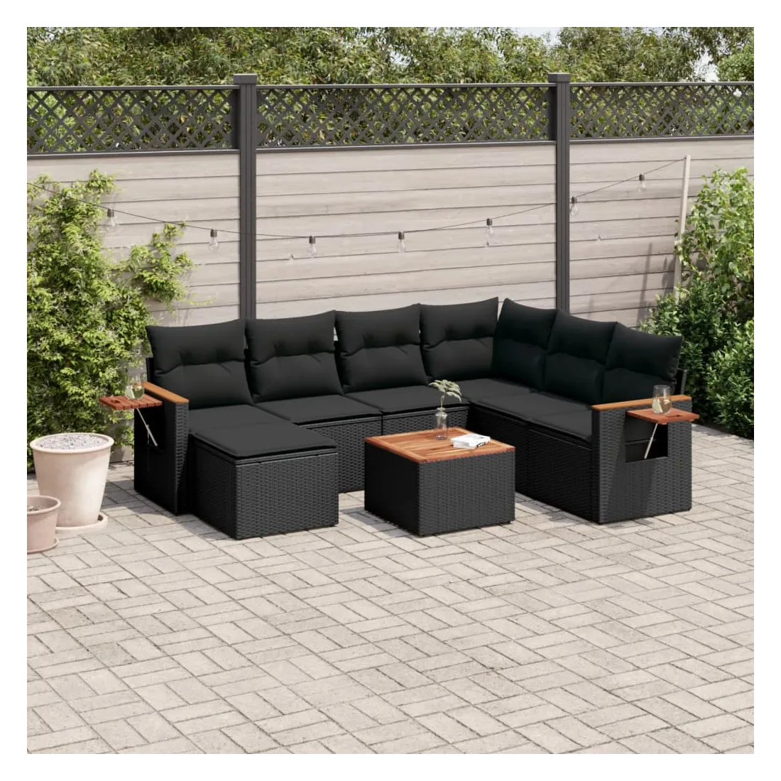 Cet ensemble de canapés de jardin est le complément parfait de votre arrière-cour, terrasse ou patio, offrant un espace confortable et accueillant pour discuter avec la famille et les amis ou simplement se détendre et profiter de l'extérieur. Matériau durable : la résine tressée, également connue sous le nom de poly rotin, est un matériau synthétique solide et nécessitant peu d'entretien qui ressemble au rotin naturel. Il est léger, facile à nettoyer et couramment utilisé pour les meubles d'extérieur en raison de sa durabilité et de ses propriétés de résistance aux intempéries.Dessus stable et facile à nettoyer : cette table de jardin a un dessus en bois d'acacia robuste, durable et facile à nettoyer avec un chiffon humide.Table d'appoint pratique : ce mobilier d'extérieur comprend une table d'appoint pliable avec un ressort à gaz sur les accoudoirs, offrant un endroit pratique pour garder vos essentiels à portée de main.Housse amovible et lavable : ces coussins de siège sont dotés de housses amovibles pour un lavage et un entretien faciles.Conception modulaire : cet ensemble de meubles d'extérieur a une conception modulaire, ce qui le rend complètement flexible et facile à déplacer, afin que vous puissiez créer un agencement de meubles d'extérieur personnalisé. Bon à savoir :Pour que vos meubles d'extérieur restent beaux, nous vous recommandons de les protéger avec une housse imperméable.