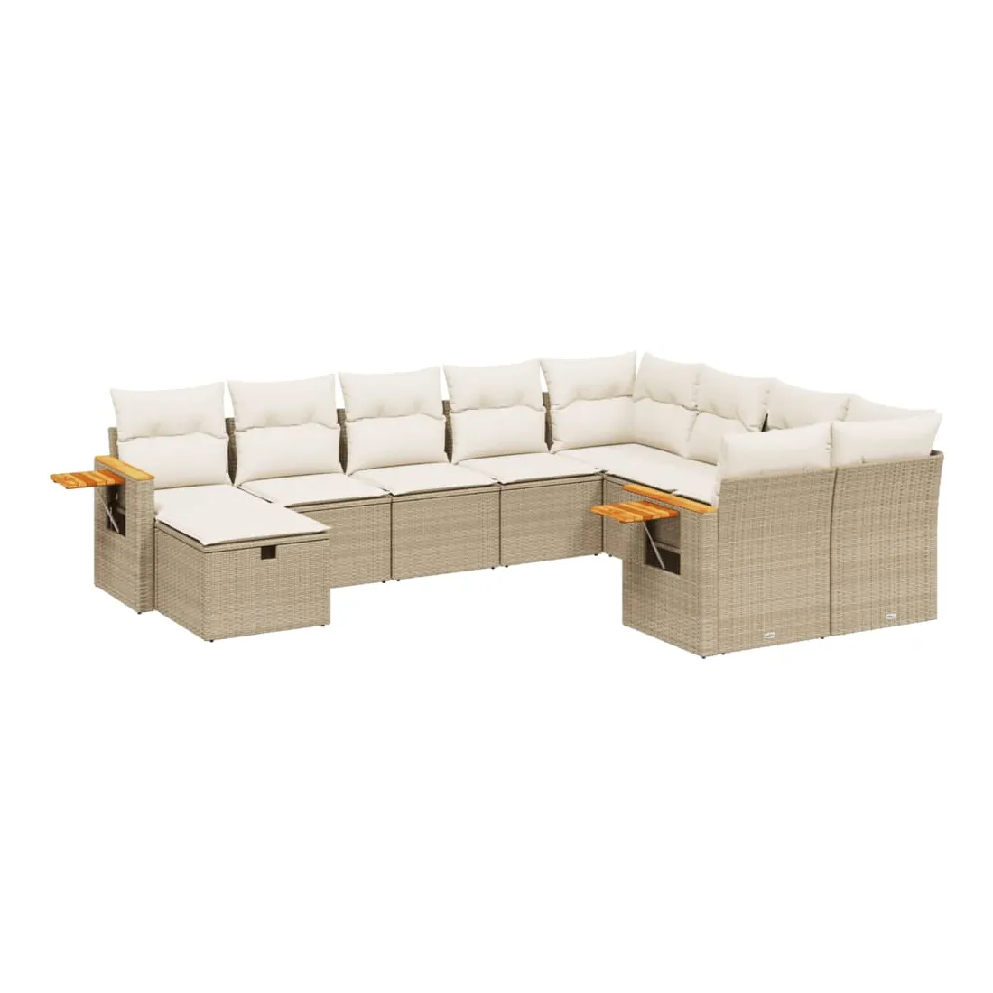 Cet ensemble de canapés de jardin est le complément parfait de votre arrière-cour, terrasse ou patio, offrant un espace confortable et accueillant pour discuter avec la famille et les amis ou simplement se détendre et profiter de l'extérieur. Matériau durable : la résine tressée, également connue sous le nom de poly rotin, est un matériau synthétique solide et nécessitant peu d'entretien qui ressemble au rotin naturel. Il est léger, facile à nettoyer et couramment utilisé pour les meubles d'extérieur en raison de sa durabilité et de ses propriétés de résistance aux intempéries.Dessus stable et facile à nettoyer : cette table de jardin a un dessus en bois d'acacia robuste, durable et facile à nettoyer avec un chiffon humide.Table d'appoint pratique : ce mobilier d'extérieur comprend une table d'appoint pliable avec un ressort à gaz sur les accoudoirs, offrant un endroit pratique pour garder vos essentiels à portée de main.Housse amovible et lavable : ces coussins de siège sont dotés de housses amovibles pour un lavage et un entretien faciles.Conception modulaire : cet ensemble de meubles d'extérieur a une conception modulaire, ce qui le rend complètement flexible et facile à déplacer, afin que vous puissiez créer un agencement de meubles d'extérieur personnalisé. Bon à savoir :Pour que vos meubles d'extérieur restent beaux, nous vous recommandons de les protéger avec une housse imperméable.