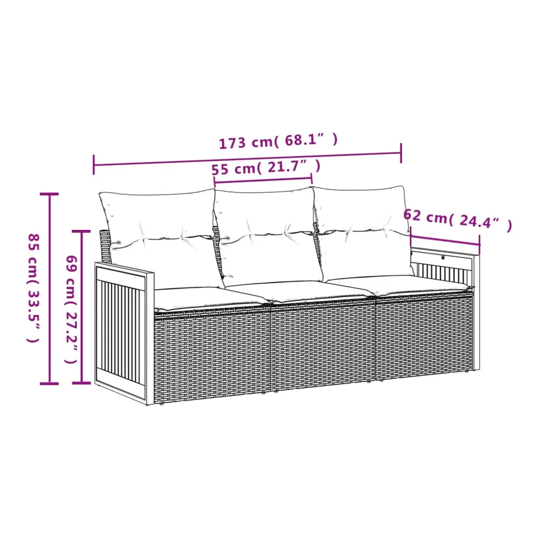 - Dimensions du coussin de siège : 55 x 55 x 3 cm (l x P x é)