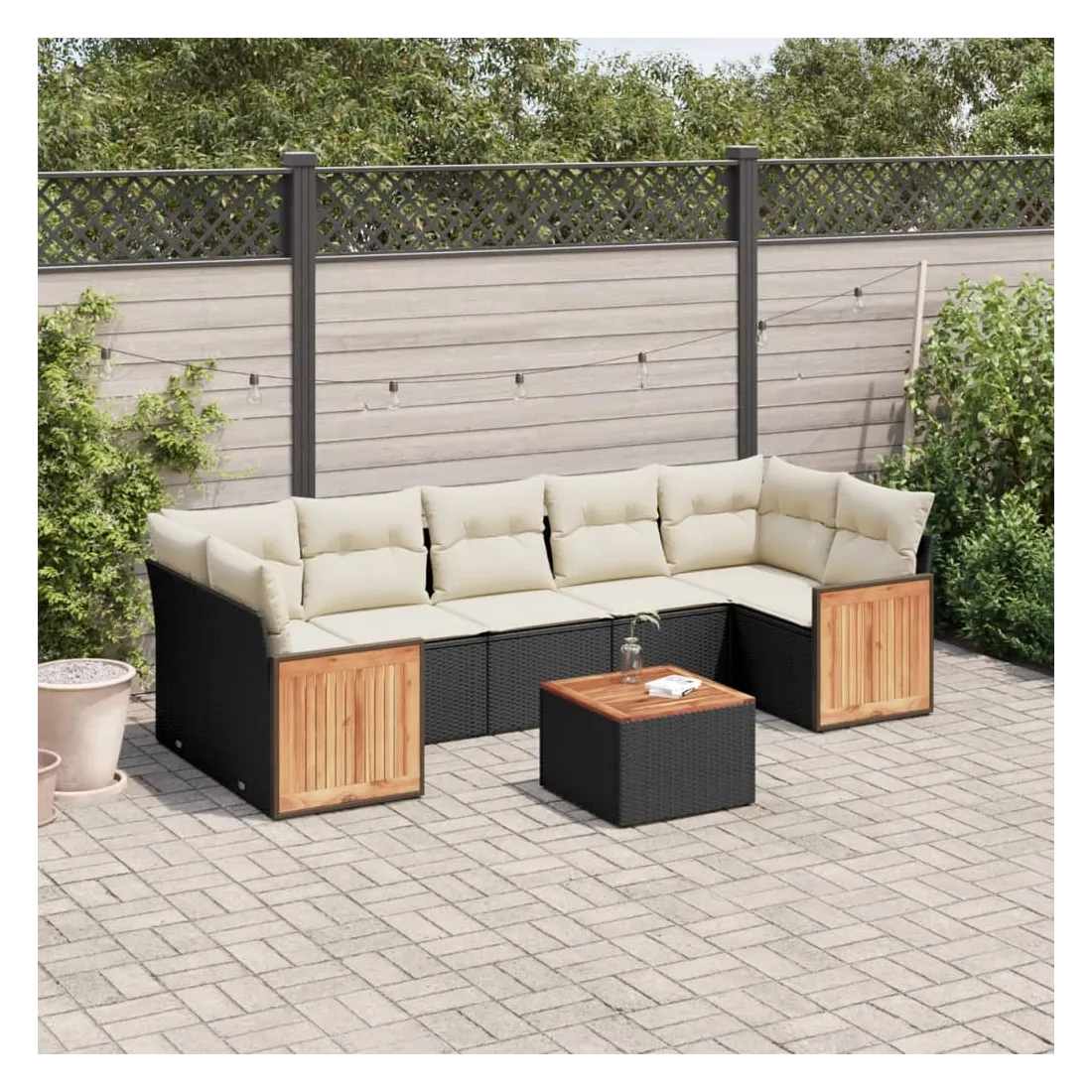 Cet ensemble de canapés de jardin est le complément parfait de votre arrière-cour, terrasse ou patio, offrant un espace confortable et accueillant pour discuter avec la famille et les amis ou simplement se détendre et profiter de l'extérieur. Matériau durable : la résine tressée, également connue sous le nom de poly rotin, est un matériau synthétique solide et nécessitant peu d'entretien qui ressemble au rotin naturel. Il est léger, facile à nettoyer et couramment utilisé pour les meubles d'extérieur en raison de sa durabilité et de ses propriétés de résistance aux intempéries.Expérience d'assise confortable : ce mobilier d'extérieur, doté de coussins épais, offre une expérience d'assise confortable.Dessus stable et facile à nettoyer : cette table de jardin a un dessus en bois d'acacia robuste, durable et facile à nettoyer avec un chiffon humide.Housse amovible et lavable : ces coussins de siège sont dotés de housses amovibles pour un lavage et un entretien faciles.Conception modulaire : cet ensemble de meubles d'extérieur a une conception modulaire, ce qui le rend complètement flexible et facile à déplacer, afin que vous puissiez créer un agencement de meubles d'extérieur personnalisé. Bon à savoir :Pour que vos meubles d'extérieur restent beaux, nous vous recommandons de les protéger avec une housse imperméable.