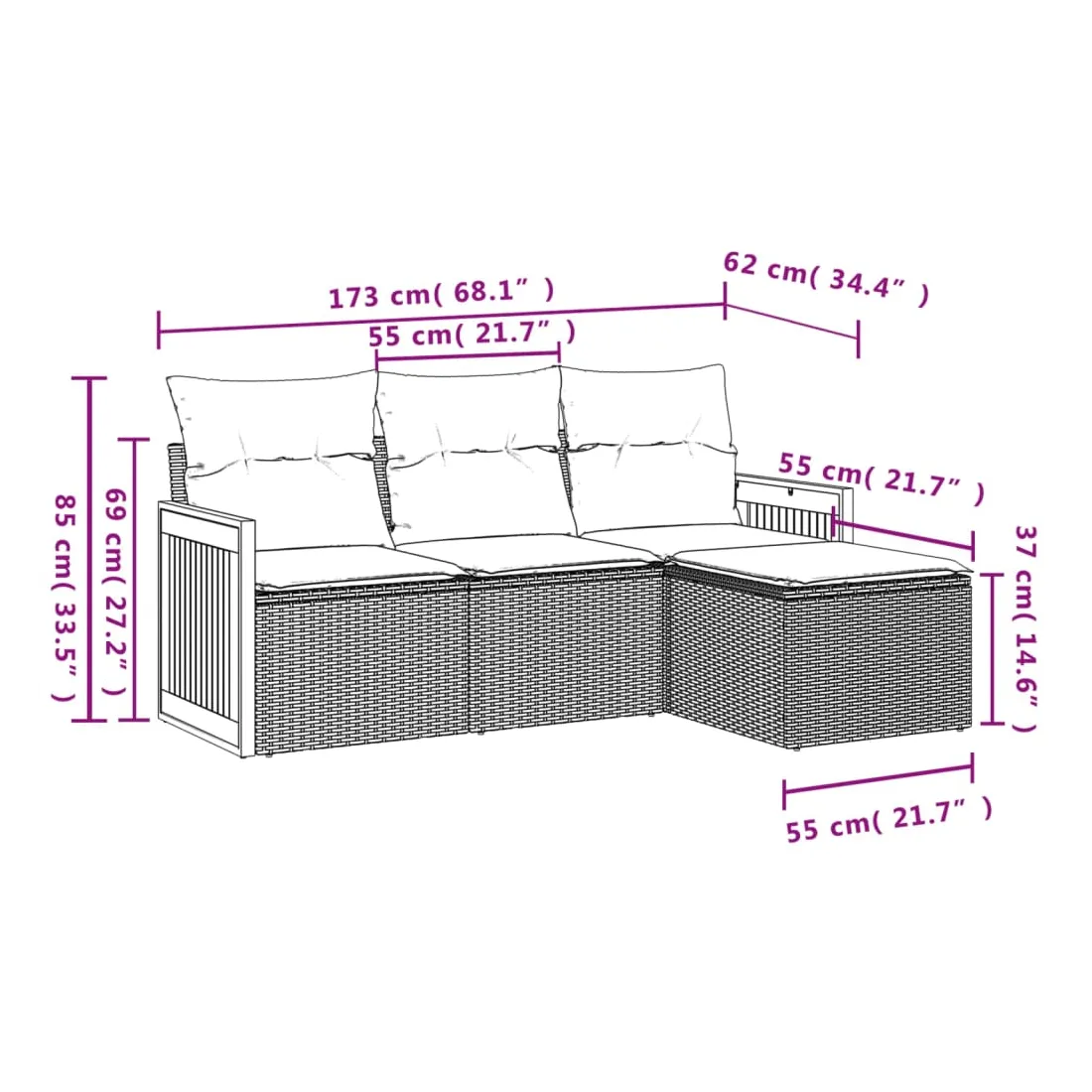 - Dimensions : 55 x 55 x 37 cm (l x P x H)