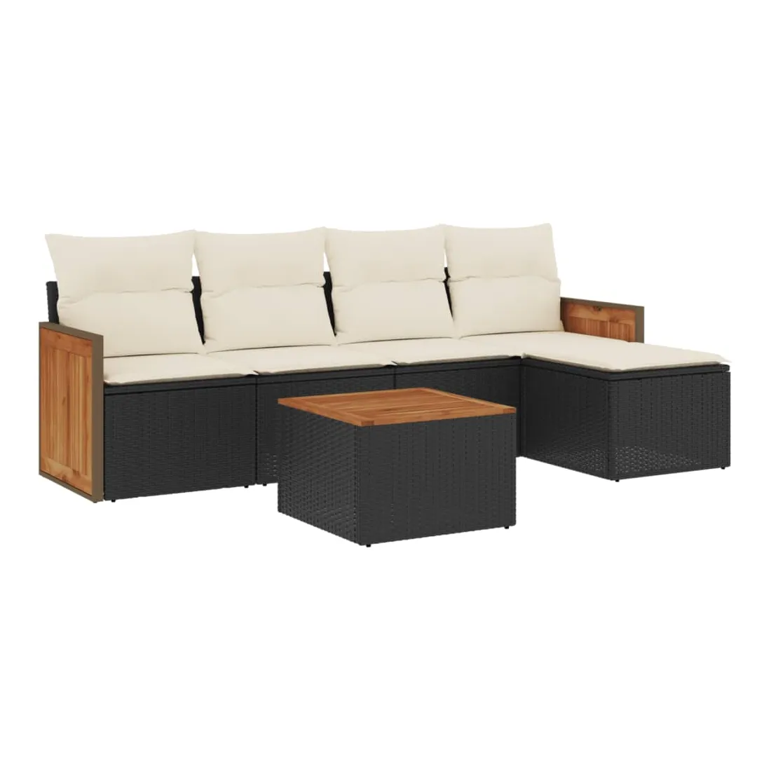 Cet ensemble de canapés de jardin est le complément parfait de votre arrière-cour, terrasse ou patio, offrant un espace confortable et accueillant pour discuter avec la famille et les amis ou simplement se détendre et profiter de l'extérieur. Matériau durable : la résine tressée, également connue sous le nom de poly rotin, est un matériau synthétique solide et nécessitant peu d'entretien qui ressemble au rotin naturel. Il est léger, facile à nettoyer et couramment utilisé pour les meubles d'extérieur en raison de sa durabilité et de ses propriétés de résistance aux intempéries.Expérience d'assise confortable : ce mobilier d'extérieur, doté de coussins épais, offre une expérience d'assise confortable.Dessus stable et facile à nettoyer : cette table de jardin a un dessus en bois d'acacia robuste, durable et facile à nettoyer avec un chiffon humide.Housse amovible et lavable : ces coussins de siège sont dotés de housses amovibles pour un lavage et un entretien faciles.Conception modulaire : cet ensemble de meubles d'extérieur a une conception modulaire, ce qui le rend complètement flexible et facile à déplacer, afin que vous puissiez créer un agencement de meubles d'extérieur personnalisé. Bon à savoir :Pour que vos meubles d'extérieur restent beaux, nous vous recommandons de les protéger avec une housse imperméable.