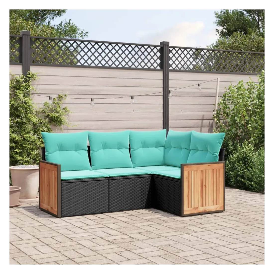 Cet ensemble de canapés de jardin est le complément parfait de votre arrière-cour, terrasse ou patio, offrant un espace confortable et accueillant pour discuter avec la famille et les amis ou simplement se détendre et profiter de l'extérieur. Matériau durable : la résine tressée, également connue sous le nom de poly rotin, est un matériau synthétique solide et nécessitant peu d'entretien qui ressemble au rotin naturel. Elle est légère, facile à nettoyer et couramment utilisée pour les meubles d'extérieur en raison de sa durabilité et de ses propriétés de résistance aux intempéries.Expérience d'assise confortable : ce mobilier d'extérieur, doté de coussins épais, offre une expérience d'assise confortable.Housse amovible et lavable : ces coussins de siège sont dotés de housses amovibles pour un lavage et un entretien faciles.Conception modulaire : cet ensemble de meubles d'extérieur a une conception modulaire, ce qui le rend complètement flexible et facile à déplacer, afin que vous puissiez créer un agencement de meubles d'extérieur personnalisé. Bon à savoir :Pour que vos meubles d'extérieur restent beaux, nous vous recommandons de les protéger avec une housse imperméable.