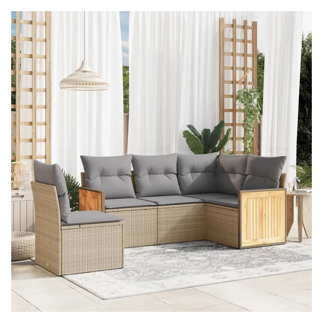 Salon de jardin avec coussins 5 pcs beige résine tressée