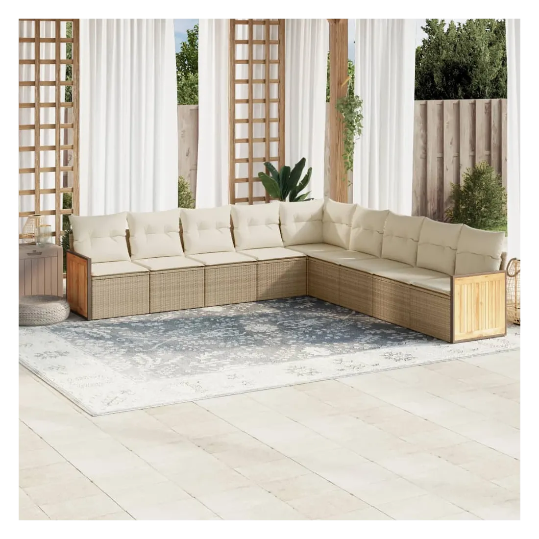 Cet ensemble de canapés de jardin est le complément parfait de votre arrière-cour, terrasse ou patio, offrant un espace confortable et accueillant pour discuter avec la famille et les amis ou simplement se détendre et profiter de l'extérieur. Matériau durable : la résine tressée, également connue sous le nom de poly rotin, est un matériau synthétique solide et nécessitant peu d'entretien qui ressemble au rotin naturel. Il est léger, facile à nettoyer et couramment utilisé pour les meubles d'extérieur en raison de sa durabilité et de ses propriétés de résistance aux intempéries.Expérience d'assise confortable : ce mobilier d'extérieur, doté de coussins épais, offre une expérience d'assise confortable.Housse amovible et lavable : ces coussins de siège sont dotés de housses amovibles pour un lavage et un entretien faciles.Conception modulaire : cet ensemble de meubles d'extérieur a une conception modulaire, ce qui le rend complètement flexible et facile à déplacer, afin que vous puissiez créer un agencement de meubles d'extérieur personnalisé. Bon à savoir :Pour que vos meubles d'extérieur restent beaux, nous vous recommandons de les protéger avec une housse imperméable.