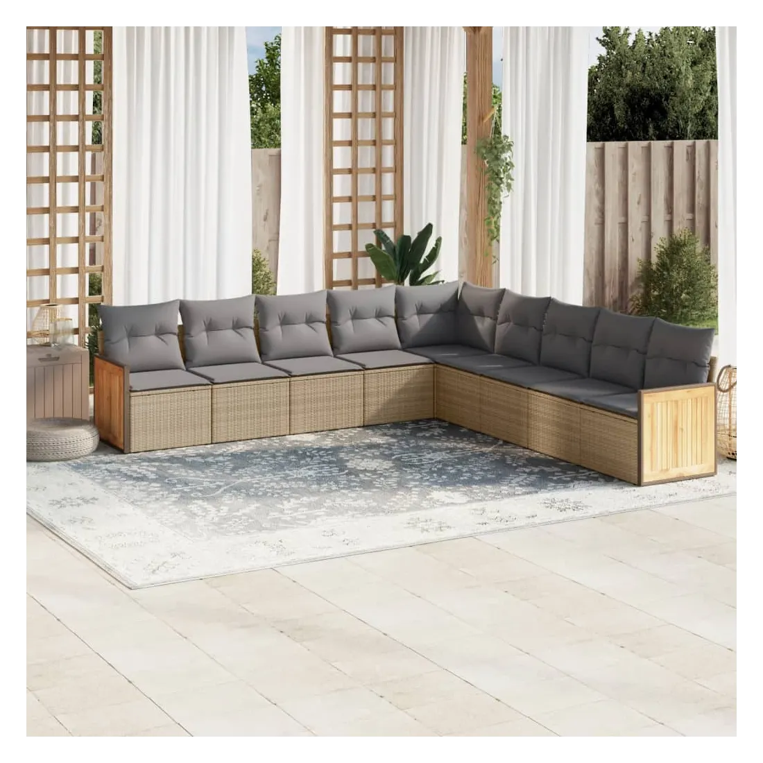 Cet ensemble de canapés de jardin est le complément parfait de votre arrière-cour, terrasse ou patio, offrant un espace confortable et accueillant pour discuter avec la famille et les amis ou simplement se détendre et profiter de l'extérieur. Matériau durable : la résine tressée, également connue sous le nom de poly rotin, est un matériau synthétique solide et nécessitant peu d'entretien qui ressemble au rotin naturel. Il est léger, facile à nettoyer et couramment utilisé pour les meubles d'extérieur en raison de sa durabilité et de ses propriétés de résistance aux intempéries.Expérience d'assise confortable : ce mobilier d'extérieur, doté de coussins épais, offre une expérience d'assise confortable.Housse amovible et lavable : ces coussins de siège sont dotés de housses amovibles pour un lavage et un entretien faciles.Conception modulaire : cet ensemble de meubles d'extérieur a une conception modulaire, ce qui le rend complètement flexible et facile à déplacer, afin que vous puissiez créer un agencement de meubles d'extérieur personnalisé. Bon à savoir :Pour que vos meubles d'extérieur restent beaux, nous vous recommandons de les protéger avec une housse imperméable.