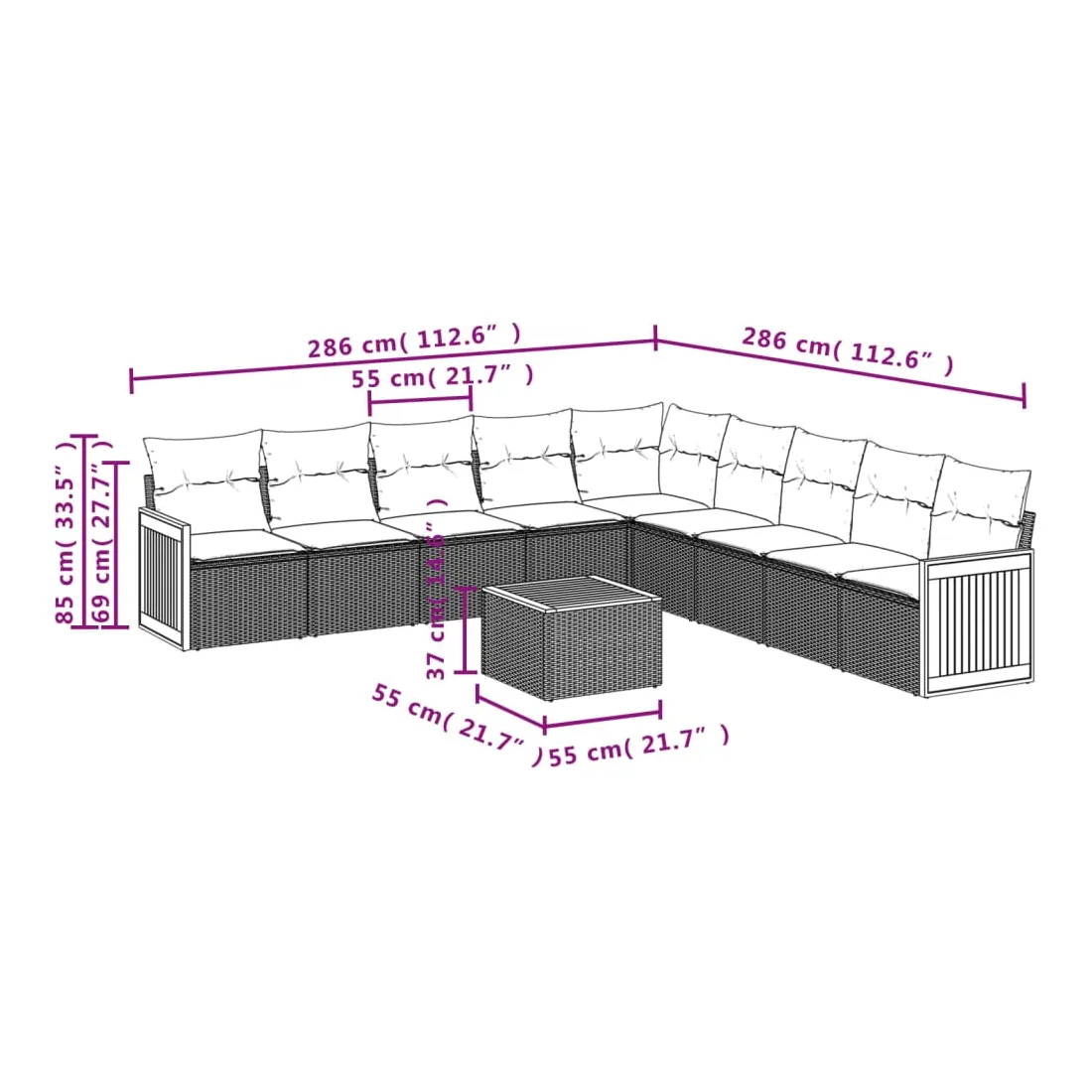 Cet ensemble de canapés de jardin est le complément parfait de votre arrière-cour, terrasse ou patio, offrant un espace confortable et accueillant pour discuter avec la famille et les amis ou simplement se détendre et profiter de l'extérieur. Matériau durable : la résine tressée, également connue sous le nom de poly rotin, est un matériau synthétique solide et nécessitant peu d'entretien qui ressemble au rotin naturel. Il est léger, facile à nettoyer et couramment utilisé pour les meubles d'extérieur en raison de sa durabilité et de ses propriétés de résistance aux intempéries.Expérience d'assise confortable : ce mobilier d'extérieur, doté de coussins épais, offre une expérience d'assise confortable.Dessus stable et facile à nettoyer : cette table de jardin a un dessus en bois d'acacia robuste, durable et facile à nettoyer avec un chiffon humide.Housse amovible et lavable : ces coussins de siège sont dotés de housses amovibles pour un lavage et un entretien faciles.Conception modulaire : cet ensemble de meubles d'extérieur a une conception modulaire, ce qui le rend complètement flexible et facile à déplacer, afin que vous puissiez créer un agencement de meubles d'extérieur personnalisé. Bon à savoir :Pour que vos meubles d'extérieur restent beaux, nous vous recommandons de les protéger avec une housse imperméable.