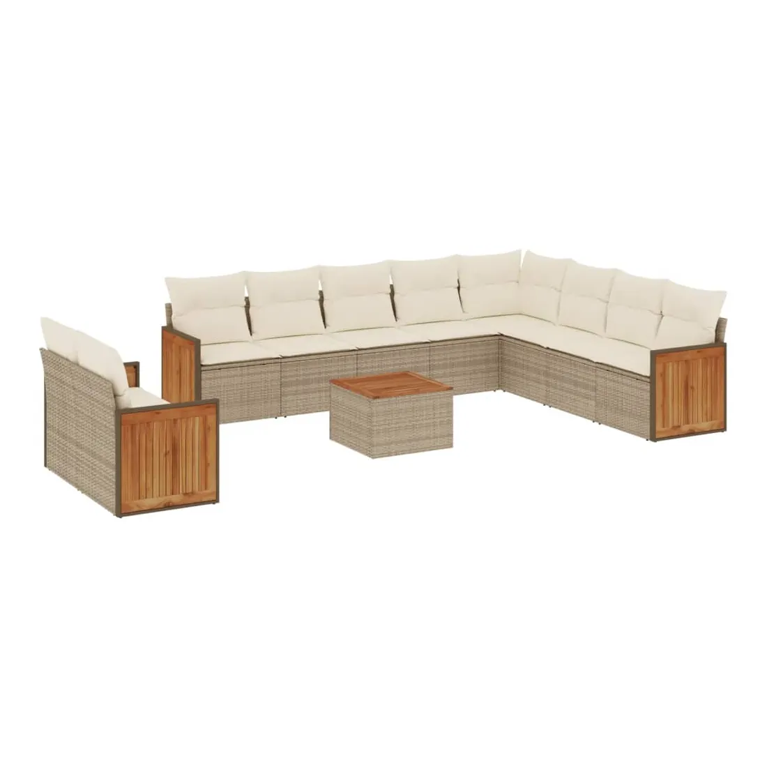 Cet ensemble de canapés de jardin est le complément parfait de votre arrière-cour, terrasse ou patio, offrant un espace confortable et accueillant pour discuter avec la famille et les amis ou simplement se détendre et profiter de l'extérieur. Matériau durable : la résine tressée, également connue sous le nom de poly rotin, est un matériau synthétique solide et nécessitant peu d'entretien qui ressemble au rotin naturel. Il est léger, facile à nettoyer et couramment utilisé pour les meubles d'extérieur en raison de sa durabilité et de ses propriétés de résistance aux intempéries.Expérience d'assise confortable : ce mobilier d'extérieur, doté de coussins épais, offre une expérience d'assise confortable.Dessus stable et facile à nettoyer : cette table de jardin a un dessus en bois d'acacia robuste, durable et facile à nettoyer avec un chiffon humide.Housse amovible et lavable : ces coussins de siège sont dotés de housses amovibles pour un lavage et un entretien faciles.Conception modulaire : cet ensemble de meubles d'extérieur a une conception modulaire, ce qui le rend complètement flexible et facile à déplacer, afin que vous puissiez créer un agencement de meubles d'extérieur personnalisé. Bon à savoir :Pour que vos meubles d'extérieur restent beaux, nous vous recommandons de les protéger avec une housse imperméable.