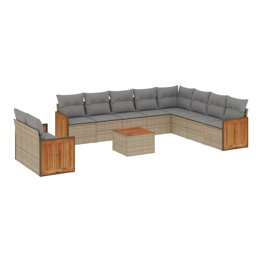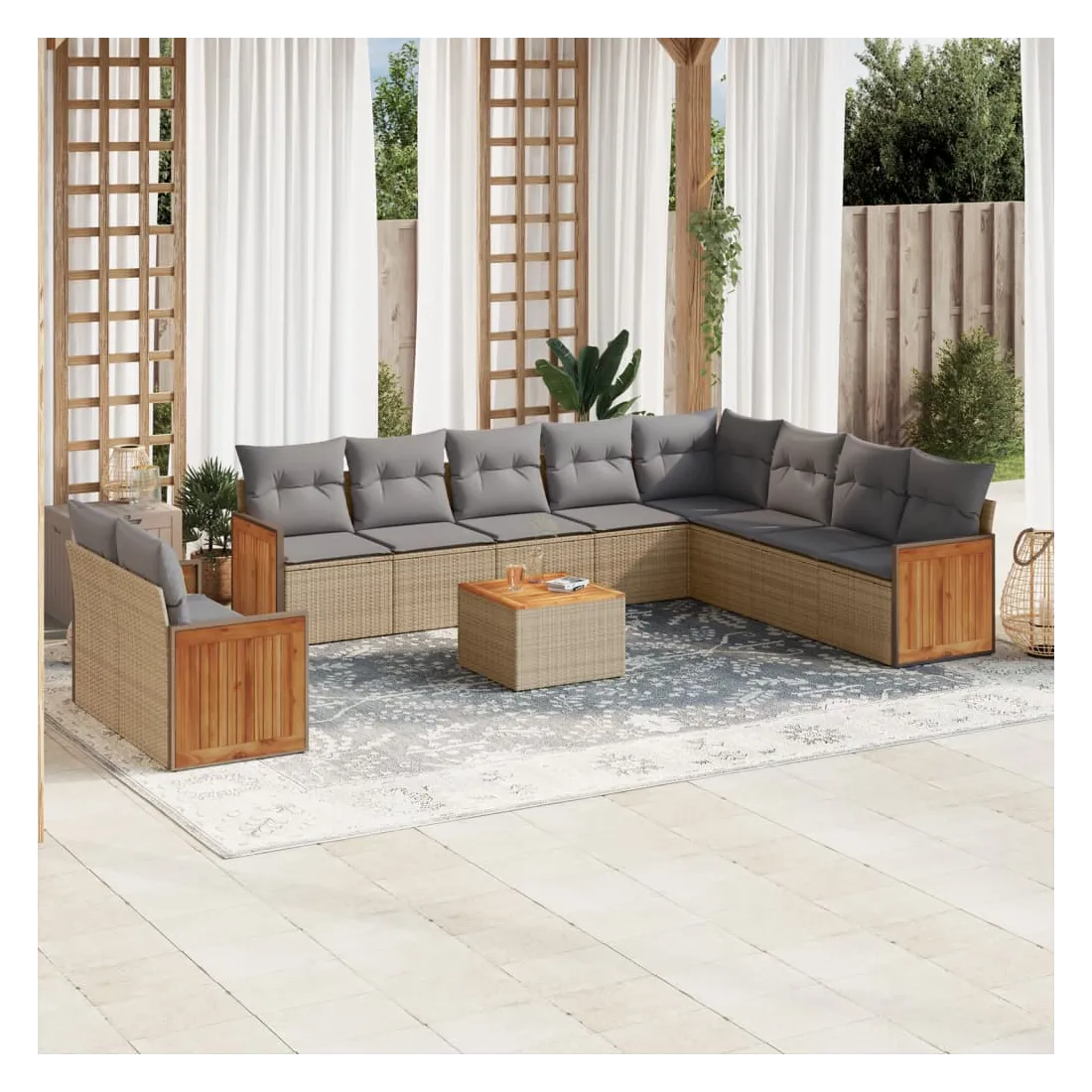 Cet ensemble de canapés de jardin est le complément parfait de votre arrière-cour, terrasse ou patio, offrant un espace confortable et accueillant pour discuter avec la famille et les amis ou simplement se détendre et profiter de l'extérieur. Matériau durable : la résine tressée, également connue sous le nom de poly rotin, est un matériau synthétique solide et nécessitant peu d'entretien qui ressemble au rotin naturel. Il est léger, facile à nettoyer et couramment utilisé pour les meubles d'extérieur en raison de sa durabilité et de ses propriétés de résistance aux intempéries.Expérience d'assise confortable : ce mobilier d'extérieur, doté de coussins épais, offre une expérience d'assise confortable.Dessus stable et facile à nettoyer : cette table de jardin a un dessus en bois d'acacia robuste, durable et facile à nettoyer avec un chiffon humide.Housse amovible et lavable : ces coussins de siège sont dotés de housses amovibles pour un lavage et un entretien faciles.Conception modulaire : cet ensemble de meubles d'extérieur a une conception modulaire, ce qui le rend complètement flexible et facile à déplacer, afin que vous puissiez créer un agencement de meubles d'extérieur personnalisé. Bon à savoir :Pour que vos meubles d'extérieur restent beaux, nous vous recommandons de les protéger avec une housse imperméable.