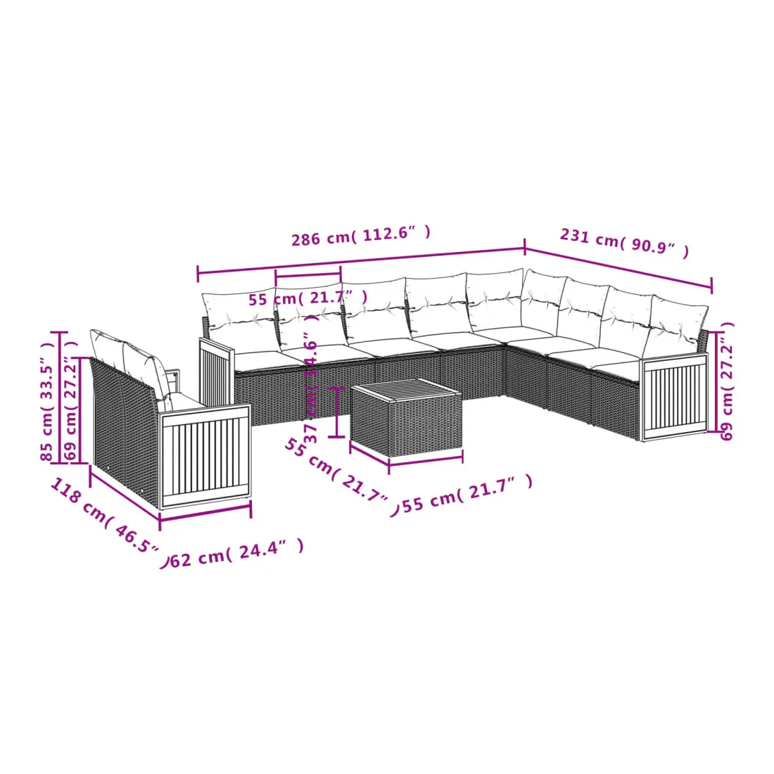 - Dimensions du coussin de dossier : 55 x 45 x 13 cm (L x l x é)