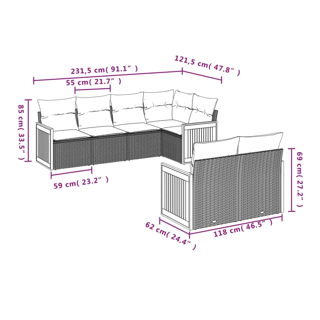 Cet ensemble de canapés de jardin est le complément parfait de votre arrière-cour, terrasse ou patio, offrant un espace confortable et accueillant pour discuter avec la famille et les amis ou simplement se détendre et profiter de l'extérieur. Matériau durable : la résine tressée, également connue sous le nom de poly rotin, est un matériau synthétique solide et nécessitant peu d'entretien qui ressemble au rotin naturel. Il est léger, facile à nettoyer et couramment utilisé pour les meubles d'extérieur en raison de sa durabilité et de ses propriétés de résistance aux intempéries.Expérience d'assise confortable : ce mobilier d'extérieur, doté de coussins épais, offre une expérience d'assise confortable.Housse amovible et lavable : ces coussins de siège sont dotés de housses amovibles pour un lavage et un entretien faciles.Conception modulaire : cet ensemble de meubles d'extérieur a une conception modulaire, ce qui le rend complètement flexible et facile à déplacer, afin que vous puissiez créer un agencement de meubles d'extérieur personnalisé. Bon à savoir :Pour que vos meubles d'extérieur restent beaux, nous vous recommandons de les protéger avec une housse imperméable.