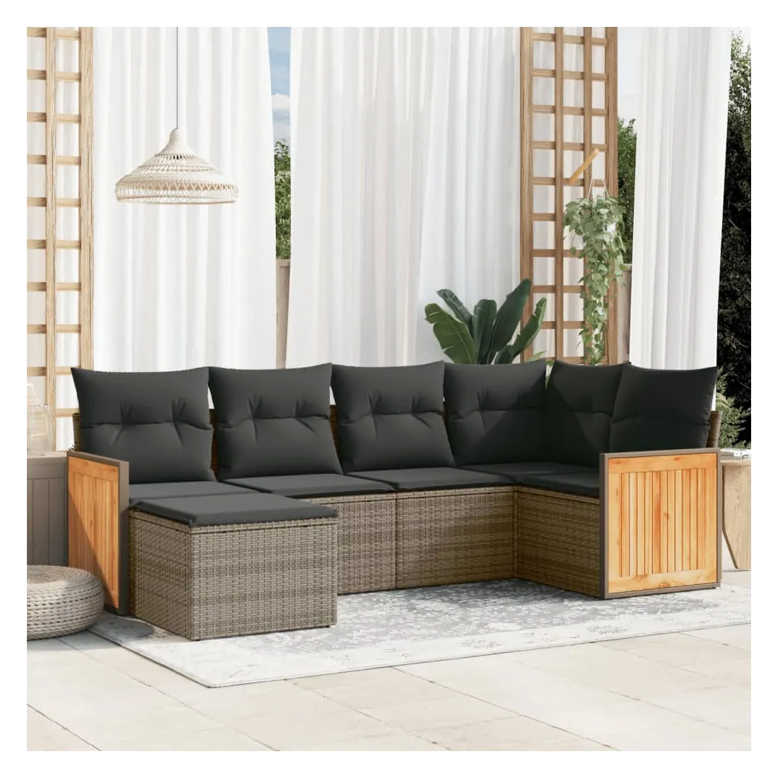 Cet ensemble de canapés de jardin est le complément parfait de votre arrière-cour, terrasse ou patio, offrant un espace confortable et accueillant pour discuter avec la famille et les amis ou simplement se détendre et profiter de l'extérieur. Matériau durable : la résine tressée, également connue sous le nom de poly rotin, est un matériau synthétique solide et nécessitant peu d'entretien qui ressemble au rotin naturel. Il est léger, facile à nettoyer et couramment utilisé pour les meubles d'extérieur en raison de sa durabilité et de ses propriétés de résistance aux intempéries.Expérience d'assise confortable : ce mobilier d'extérieur, doté de coussins épais, offre une expérience d'assise confortable.Housse amovible et lavable : ces coussins de siège sont dotés de housses amovibles pour un lavage et un entretien faciles.Conception modulaire : cet ensemble de meubles d'extérieur a une conception modulaire, ce qui le rend complètement flexible et facile à déplacer, afin que vous puissiez créer un agencement de meubles d'extérieur personnalisé. Bon à savoir :Pour que vos meubles d'extérieur restent beaux, nous vous recommandons de les protéger avec une housse imperméable.