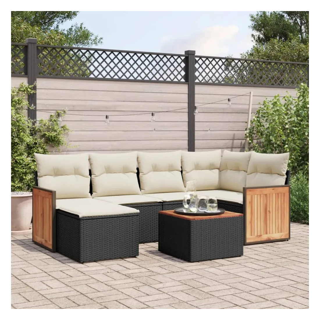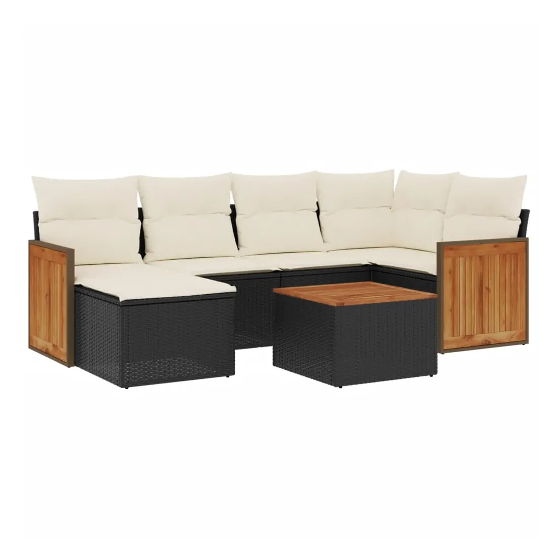 Cet ensemble de canapés de jardin est le complément parfait de votre arrière-cour, terrasse ou patio, offrant un espace confortable et accueillant pour discuter avec la famille et les amis ou simplement se détendre et profiter de l'extérieur. Matériau durable : la résine tressée, également connue sous le nom de poly rotin, est un matériau synthétique solide et nécessitant peu d'entretien qui ressemble au rotin naturel. Il est léger, facile à nettoyer et couramment utilisé pour les meubles d'extérieur en raison de sa durabilité et de ses propriétés de résistance aux intempéries.Expérience d'assise confortable : ce mobilier d'extérieur, doté de coussins épais, offre une expérience d'assise confortable.Dessus stable et facile à nettoyer : cette table de jardin a un dessus en bois d'acacia robuste, durable et facile à nettoyer avec un chiffon humide.Housse amovible et lavable : ces coussins de siège sont dotés de housses amovibles pour un lavage et un entretien faciles.Conception modulaire : cet ensemble de meubles d'extérieur a une conception modulaire, ce qui le rend complètement flexible et facile à déplacer, afin que vous puissiez créer un agencement de meubles d'extérieur personnalisé. Bon à savoir :Pour que vos meubles d'extérieur restent beaux, nous vous recommandons de les protéger avec une housse imperméable.