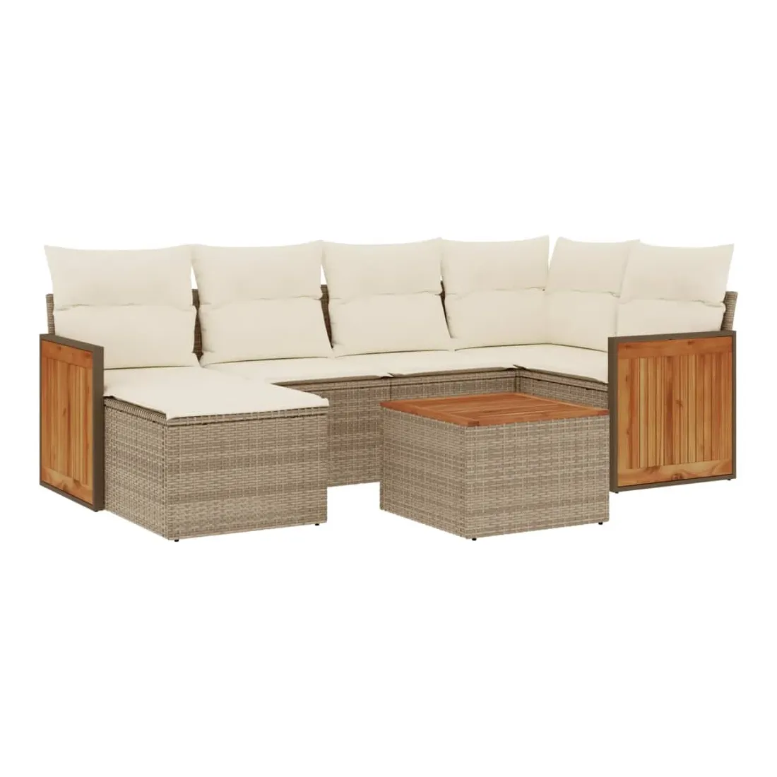 Cet ensemble de canapés de jardin est le complément parfait de votre arrière-cour, terrasse ou patio, offrant un espace confortable et accueillant pour discuter avec la famille et les amis ou simplement se détendre et profiter de l'extérieur. Matériau durable : la résine tressée, également connue sous le nom de poly rotin, est un matériau synthétique solide et nécessitant peu d'entretien qui ressemble au rotin naturel. Il est léger, facile à nettoyer et couramment utilisé pour les meubles d'extérieur en raison de sa durabilité et de ses propriétés de résistance aux intempéries.Expérience d'assise confortable : ce mobilier d'extérieur, doté de coussins épais, offre une expérience d'assise confortable.Dessus stable et facile à nettoyer : cette table de jardin a un dessus en bois d'acacia robuste, durable et facile à nettoyer avec un chiffon humide.Housse amovible et lavable : ces coussins de siège sont dotés de housses amovibles pour un lavage et un entretien faciles.Conception modulaire : cet ensemble de meubles d'extérieur a une conception modulaire, ce qui le rend complètement flexible et facile à déplacer, afin que vous puissiez créer un agencement de meubles d'extérieur personnalisé. Bon à savoir :Pour que vos meubles d'extérieur restent beaux, nous vous recommandons de les protéger avec une housse imperméable.