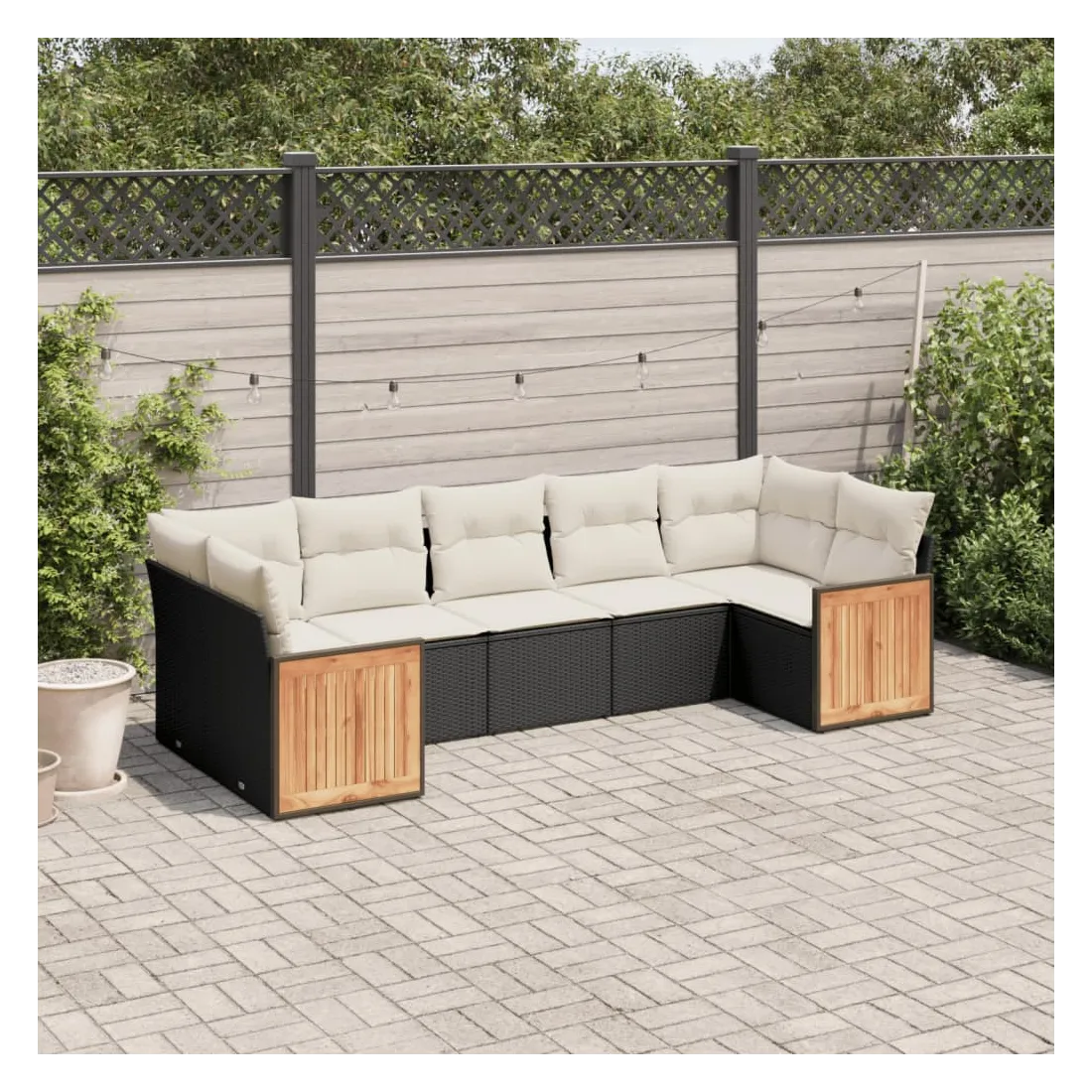 Cet ensemble de canapés de jardin est le complément parfait de votre arrière-cour, terrasse ou patio, offrant un espace confortable et accueillant pour discuter avec la famille et les amis ou simplement se détendre et profiter de l'extérieur. Matériau durable : la résine tressée, également connue sous le nom de poly rotin, est un matériau synthétique solide et nécessitant peu d'entretien qui ressemble au rotin naturel. Il est léger, facile à nettoyer et couramment utilisé pour les meubles d'extérieur en raison de sa durabilité et de ses propriétés de résistance aux intempéries.Expérience d'assise confortable : ce mobilier d'extérieur, doté de coussins épais, offre une expérience d'assise confortable.Dessus stable et facile à nettoyer : cette table de jardin a un dessus en bois d'acacia robuste, durable et facile à nettoyer avec un chiffon humide.Housse amovible et lavable : ces coussins de siège sont dotés de housses amovibles pour un lavage et un entretien faciles.Conception modulaire : cet ensemble de meubles d'extérieur a une conception modulaire, ce qui le rend complètement flexible et facile à déplacer, afin que vous puissiez créer un agencement de meubles d'extérieur personnalisé. Bon à savoir :Pour que vos meubles d'extérieur restent beaux, nous vous recommandons de les protéger avec une housse imperméable.