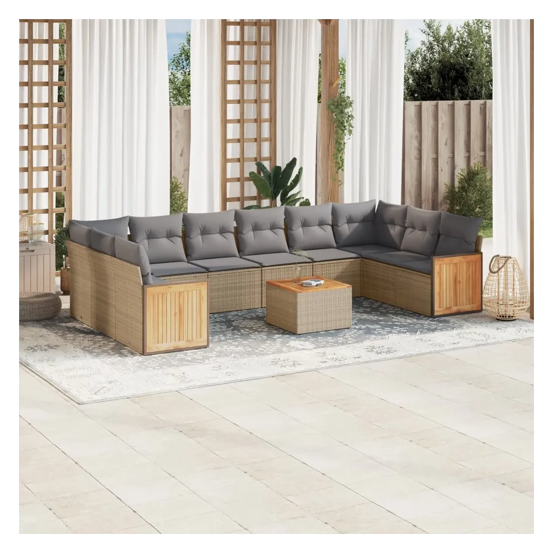 Salon de jardin 11 pcs avec coussins beige résine tressée
