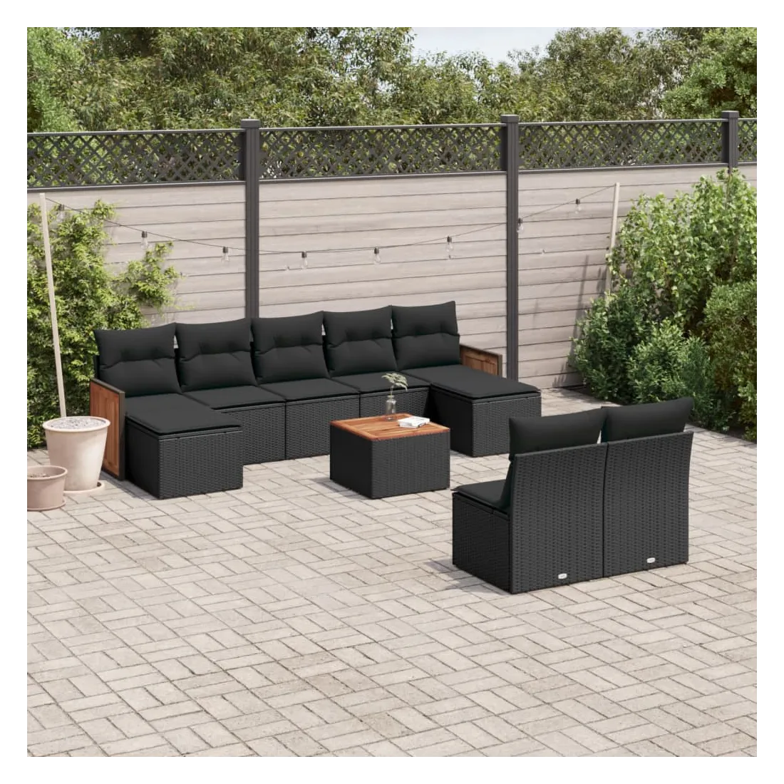 Cet ensemble de canapés de jardin est le complément parfait de votre arrière-cour, terrasse ou patio, offrant un espace confortable et accueillant pour discuter avec la famille et les amis ou simplement se détendre et profiter de l'extérieur. Matériau durable : la résine tressée, également connue sous le nom de poly rotin, est un matériau synthétique solide et nécessitant peu d'entretien qui ressemble au rotin naturel. Il est léger, facile à nettoyer et couramment utilisé pour les meubles d'extérieur en raison de sa durabilité et de ses propriétés de résistance aux intempéries.Expérience d'assise confortable : ce mobilier d'extérieur, doté de coussins épais, offre une expérience d'assise confortable.Dessus stable et facile à nettoyer : cette table de jardin a un dessus en bois d'acacia robuste, durable et facile à nettoyer avec un chiffon humide.Housse amovible et lavable : ces coussins de siège sont dotés de housses amovibles pour un lavage et un entretien faciles.Conception modulaire : cet ensemble de meubles d'extérieur a une conception modulaire, ce qui le rend complètement flexible et facile à déplacer, afin que vous puissiez créer un agencement de meubles d'extérieur personnalisé. Bon à savoir :Pour que vos meubles d'extérieur restent beaux, nous vous recommandons de les protéger avec une housse imperméable.