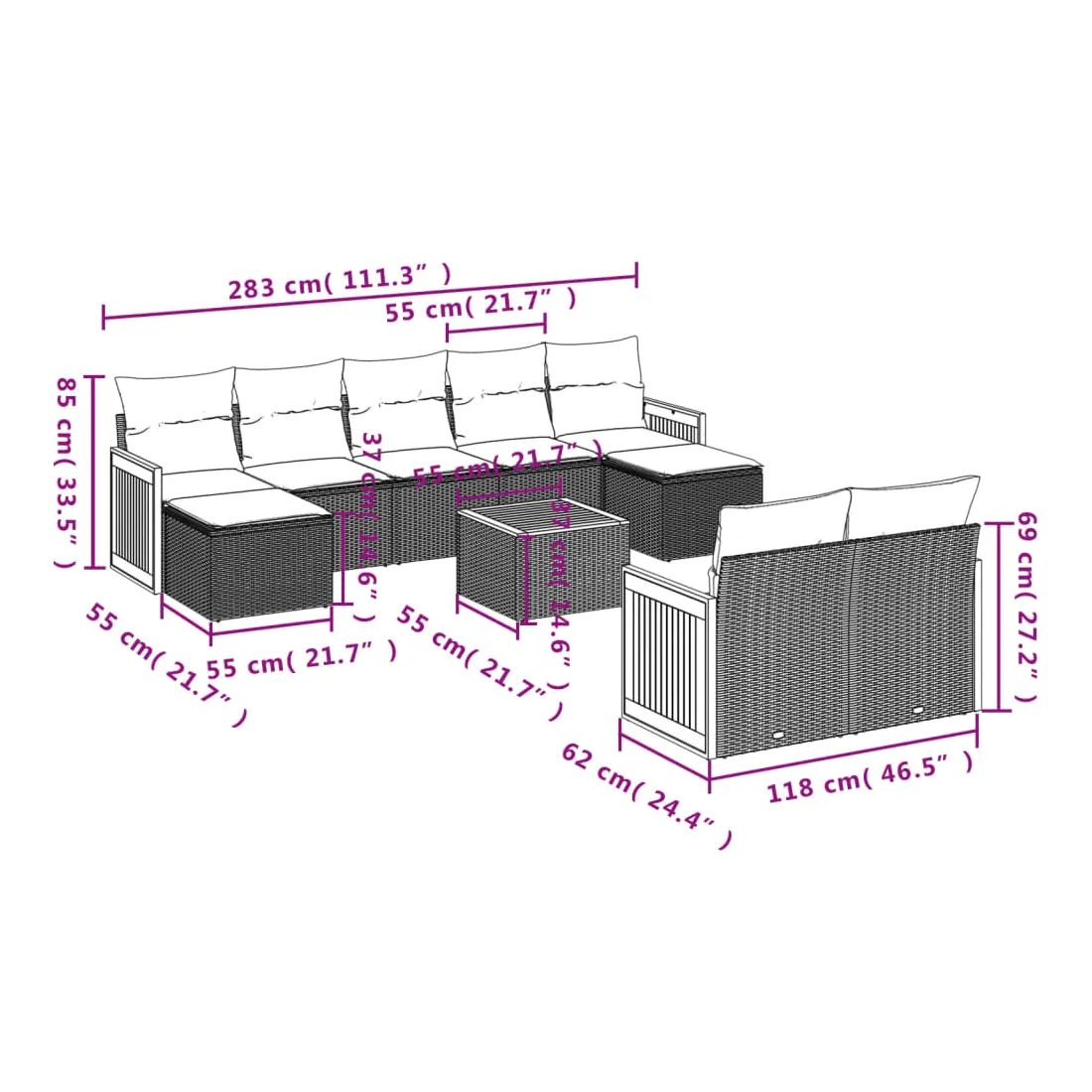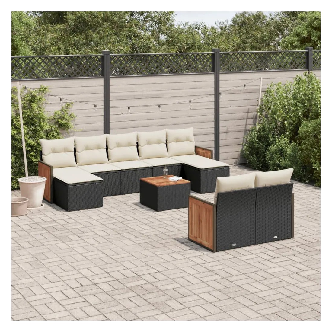 Cet ensemble de canapés de jardin est le complément parfait de votre arrière-cour, terrasse ou patio, offrant un espace confortable et accueillant pour discuter avec la famille et les amis ou simplement se détendre et profiter de l'extérieur. Matériau durable : la résine tressée, également connue sous le nom de poly rotin, est un matériau synthétique solide et nécessitant peu d'entretien qui ressemble au rotin naturel. Il est léger, facile à nettoyer et couramment utilisé pour les meubles d'extérieur en raison de sa durabilité et de ses propriétés de résistance aux intempéries.Expérience d'assise confortable : ce mobilier d'extérieur, doté de coussins épais, offre une expérience d'assise confortable.Dessus stable et facile à nettoyer : cette table de jardin a un dessus en bois d'acacia robuste, durable et facile à nettoyer avec un chiffon humide.Housse amovible et lavable : ces coussins de siège sont dotés de housses amovibles pour un lavage et un entretien faciles.Conception modulaire : cet ensemble de meubles d'extérieur a une conception modulaire, ce qui le rend complètement flexible et facile à déplacer, afin que vous puissiez créer un agencement de meubles d'extérieur personnalisé. Bon à savoir :Pour que vos meubles d'extérieur restent beaux, nous vous recommandons de les protéger avec une housse imperméable.