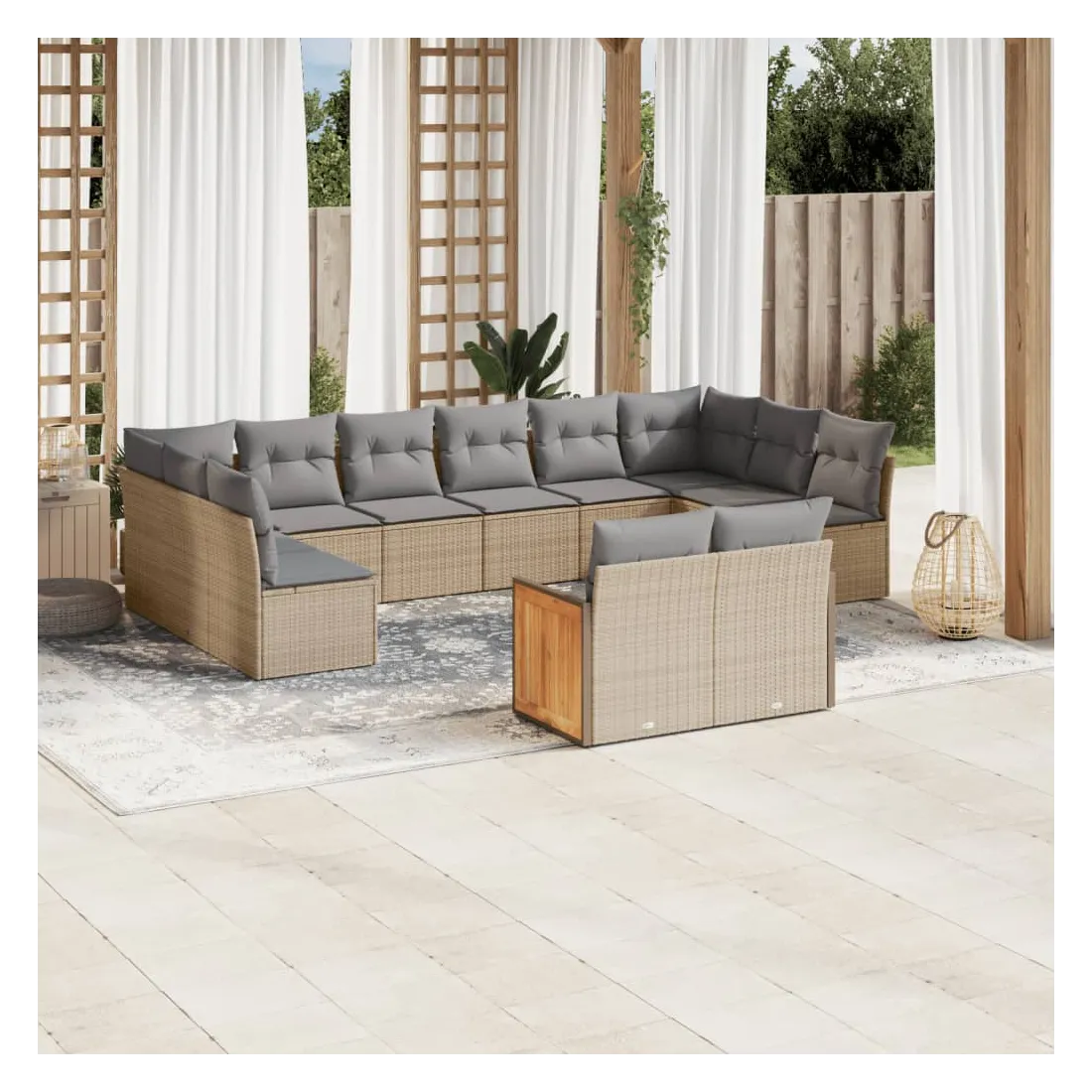 Cet ensemble de canapés de jardin est le complément parfait de votre arrière-cour, terrasse ou patio, offrant un espace confortable et accueillant pour discuter avec la famille et les amis ou simplement se détendre et profiter de l'extérieur. Matériau durable : la résine tressée, également connue sous le nom de poly rotin, est un matériau synthétique solide et nécessitant peu d'entretien qui ressemble au rotin naturel. Il est léger, facile à nettoyer et couramment utilisé pour les meubles d'extérieur en raison de sa durabilité et de ses propriétés de résistance aux intempéries.Expérience d'assise confortable : ce mobilier d'extérieur, doté de coussins épais, offre une expérience d'assise confortable.Housse amovible et lavable : ces coussins de siège sont dotés de housses amovibles pour un lavage et un entretien faciles.Conception modulaire : cet ensemble de meubles d'extérieur a une conception modulaire, ce qui le rend complètement flexible et facile à déplacer, afin que vous puissiez créer un agencement de meubles d'extérieur personnalisé. Bon à savoir :Pour que vos meubles d'extérieur restent beaux, nous vous recommandons de les protéger avec une housse imperméable.