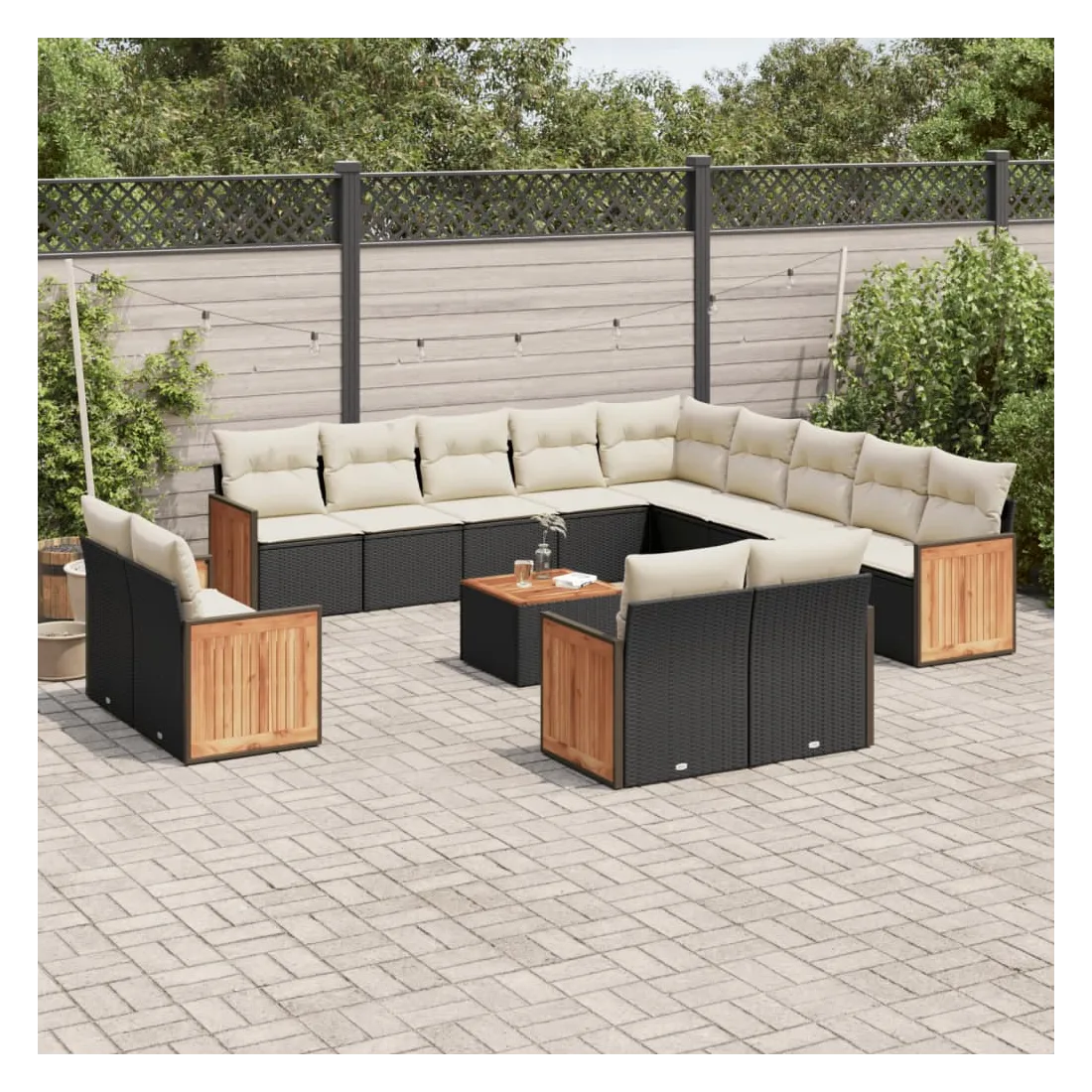 Cet ensemble de canapés de jardin est le complément parfait de votre arrière-cour, terrasse ou patio, offrant un espace confortable et accueillant pour discuter avec la famille et les amis ou simplement se détendre et profiter de l'extérieur. Matériau durable : la résine tressée, également connue sous le nom de poly rotin, est un matériau synthétique solide et nécessitant peu d'entretien qui ressemble au rotin naturel. Il est léger, facile à nettoyer et couramment utilisé pour les meubles d'extérieur en raison de sa durabilité et de ses propriétés de résistance aux intempéries.Expérience d'assise confortable : ce mobilier d'extérieur, doté de coussins épais, offre une expérience d'assise confortable.Dessus stable et facile à nettoyer : cette table de jardin a un dessus en bois d'acacia robuste, durable et facile à nettoyer avec un chiffon humide.Housse amovible et lavable : ces coussins de siège sont dotés de housses amovibles pour un lavage et un entretien faciles.Conception modulaire : cet ensemble de meubles d'extérieur a une conception modulaire, ce qui le rend complètement flexible et facile à déplacer, afin que vous puissiez créer un agencement de meubles d'extérieur personnalisé. Bon à savoir :Pour que vos meubles d'extérieur restent beaux, nous vous recommandons de les protéger avec une housse imperméable.
