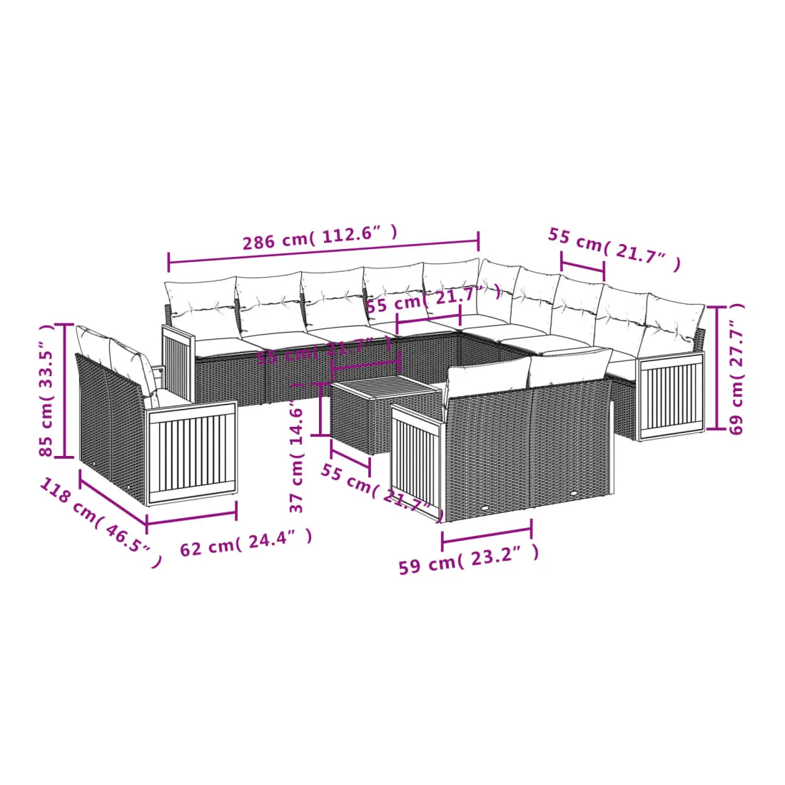 - Dimensions du coussin de dossier : 55 x 45 x 13 cm (L x l x é)