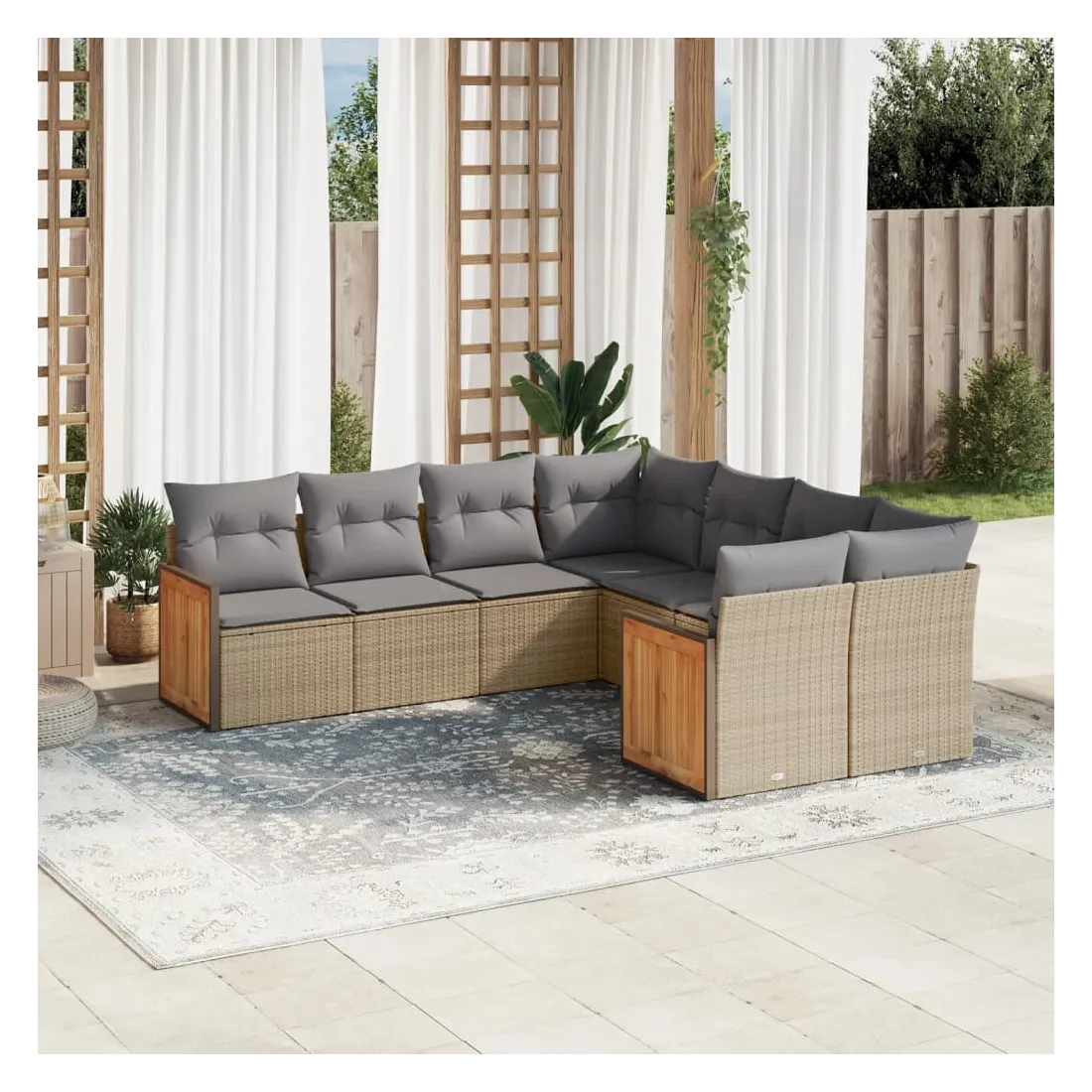 Cet ensemble de canapés de jardin est le complément parfait de votre arrière-cour, terrasse ou patio, offrant un espace confortable et accueillant pour discuter avec la famille et les amis ou simplement se détendre et profiter de l'extérieur. Matériau durable : la résine tressée, également connue sous le nom de poly rotin, est un matériau synthétique solide et nécessitant peu d'entretien qui ressemble au rotin naturel. Il est léger, facile à nettoyer et couramment utilisé pour les meubles d'extérieur en raison de sa durabilité et de ses propriétés de résistance aux intempéries.Expérience d'assise confortable : ce mobilier d'extérieur, doté de coussins épais, offre une expérience d'assise confortable.Housse amovible et lavable : ces coussins de siège sont dotés de housses amovibles pour un lavage et un entretien faciles.Conception modulaire : cet ensemble de meubles d'extérieur a une conception modulaire, ce qui le rend complètement flexible et facile à déplacer, afin que vous puissiez créer un agencement de meubles d'extérieur personnalisé. Bon à savoir :Pour que vos meubles d'extérieur restent beaux, nous vous recommandons de les protéger avec une housse imperméable.