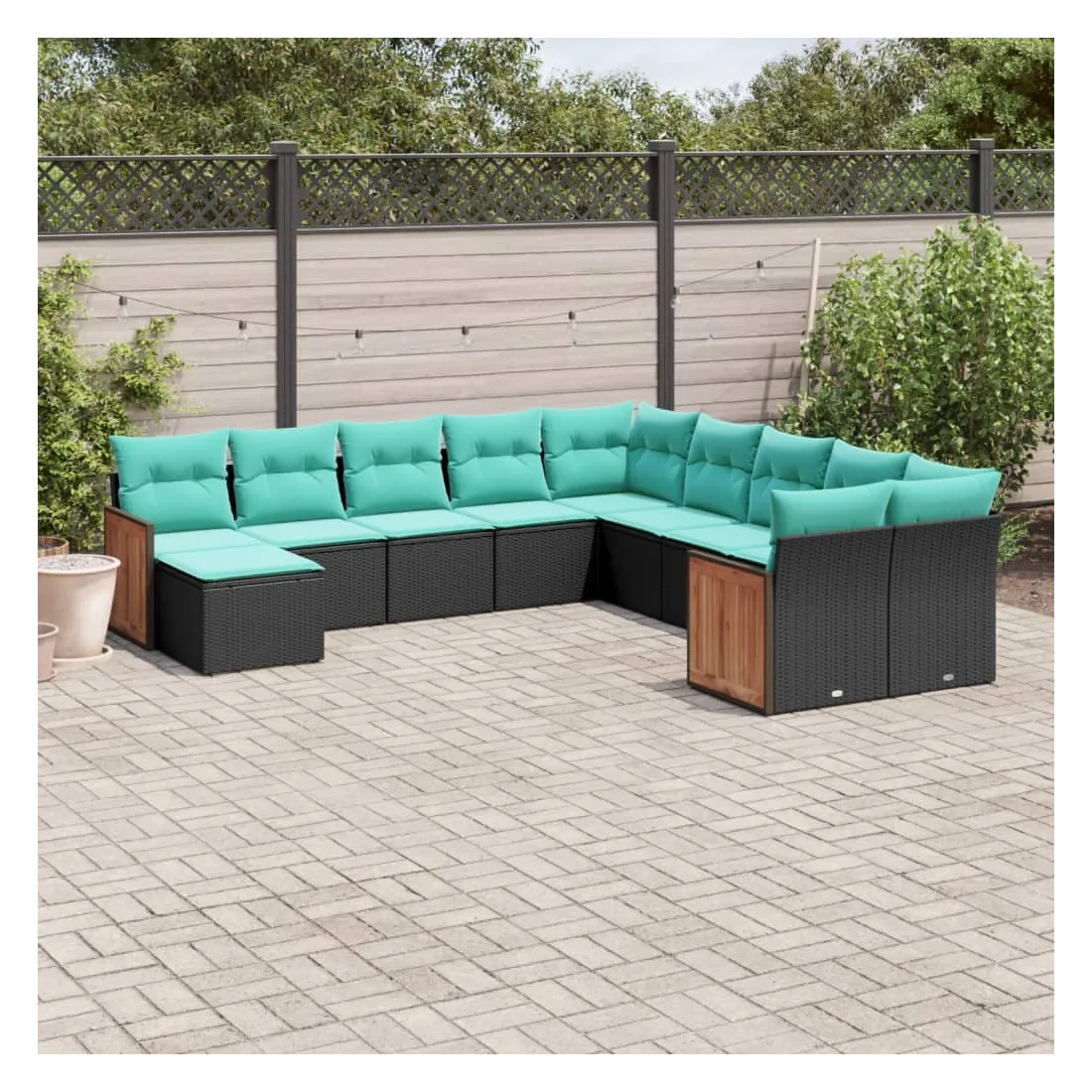 Cet ensemble de canapés de jardin est le complément parfait de votre arrière-cour, terrasse ou patio, offrant un espace confortable et accueillant pour discuter avec la famille et les amis ou simplement se détendre et profiter de l'extérieur. Matériau durable : la résine tressée, également connue sous le nom de poly rotin, est un matériau synthétique solide et nécessitant peu d'entretien qui ressemble au rotin naturel. Elle est légère, facile à nettoyer et couramment utilisée pour les meubles d'extérieur en raison de sa durabilité et de ses propriétés de résistance aux intempéries.Expérience d'assise confortable : ce mobilier d'extérieur, doté de coussins épais, offre une expérience d'assise confortable.Housse amovible et lavable : ces coussins de siège sont dotés de housses amovibles pour un lavage et un entretien faciles.Conception modulaire : cet ensemble de meubles d'extérieur a une conception modulaire, ce qui le rend complètement flexible et facile à déplacer, afin que vous puissiez créer un agencement de meubles d'extérieur personnalisé. Bon à savoir :Pour que vos meubles d'extérieur restent beaux, nous vous recommandons de les protéger avec une housse imperméable.