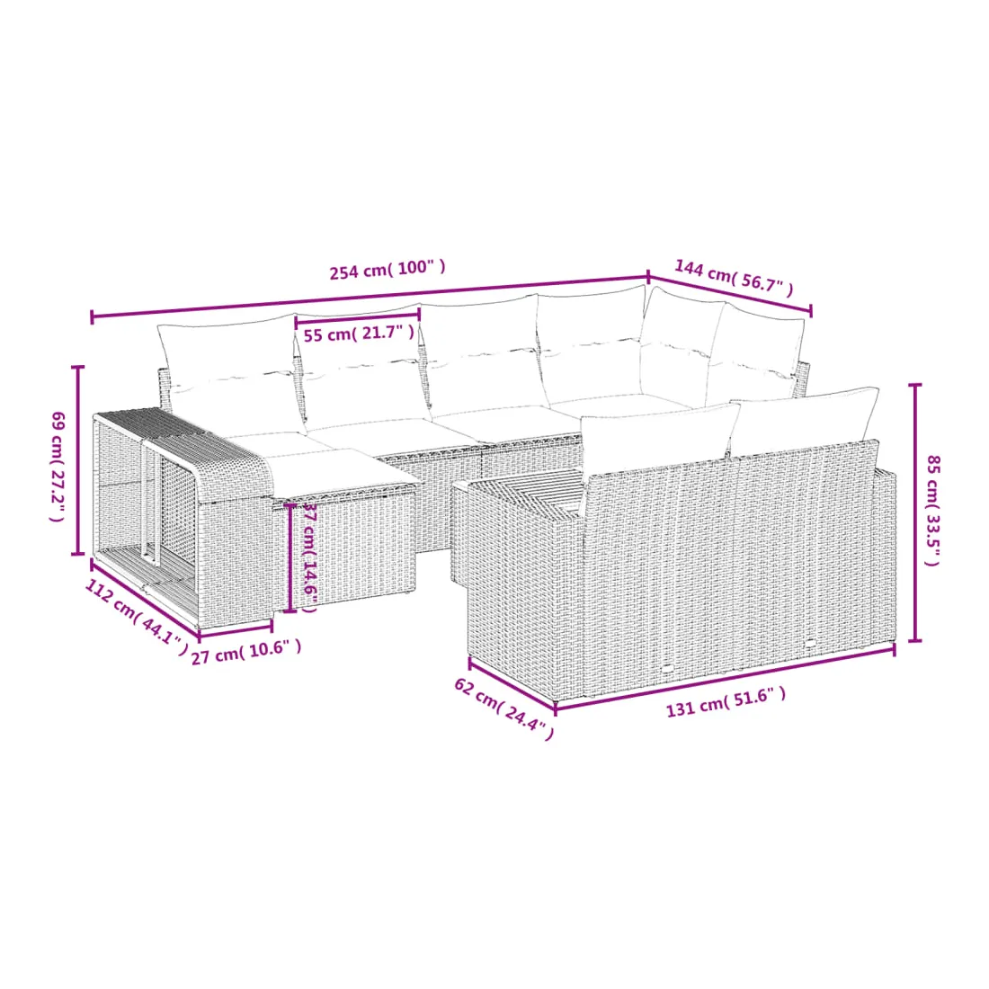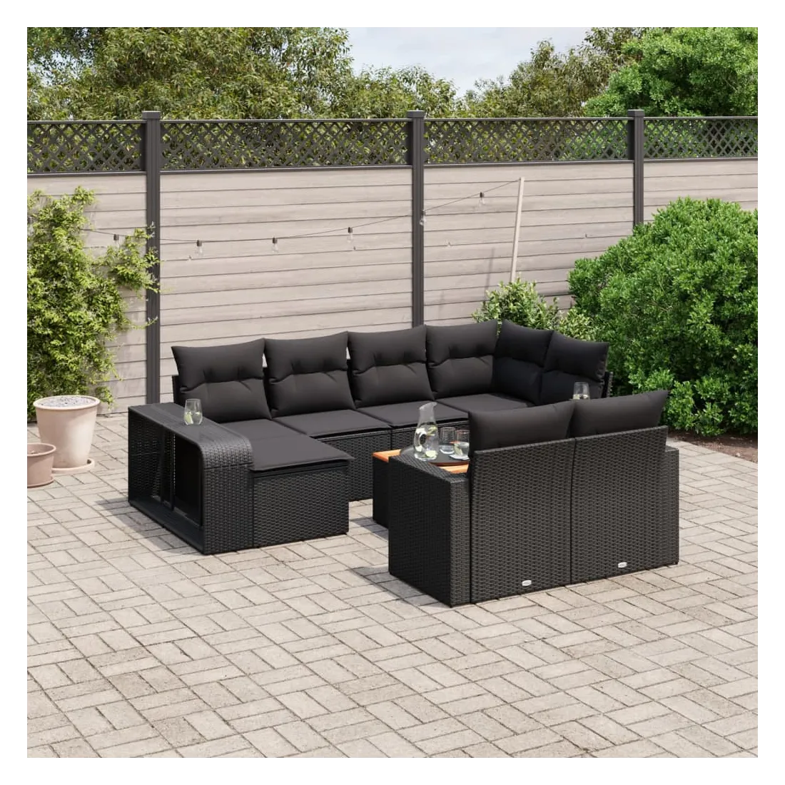 Cet ensemble de canapés de jardin est le complément parfait de votre arrière-cour, terrasse ou patio, offrant un espace confortable et accueillant pour discuter avec la famille et les amis ou simplement se détendre et profiter de l'extérieur. Matériau durable : la résine tressée, également connue sous le nom de poly rotin, est un matériau synthétique solide et nécessitant peu d'entretien qui ressemble au rotin naturel. Il est léger, facile à nettoyer et couramment utilisé pour les meubles d'extérieur en raison de sa durabilité et de ses propriétés de résistance aux intempéries.Dessus stable et facile à nettoyer : cette table de jardin a un dessus en bois d'acacia robuste, durable et facile à nettoyer avec un chiffon humide.Expérience d'assise confortable : ce canapé d'extérieur, doté de coussins épais, offre une expérience d'assise confortable.Housse amovible et lavable : ces coussins de siège sont dotés de housses amovibles pour un lavage et un entretien faciles.Conception modulaire : cet ensemble de meubles d'extérieur a une conception modulaire, ce qui le rend complètement flexible et facile à déplacer, afin que vous puissiez créer un agencement de meubles d'extérieur personnalisé. Bon à savoir :Pour que vos meubles d'extérieur restent beaux, nous vous recommandons de les protéger avec une housse imperméable.