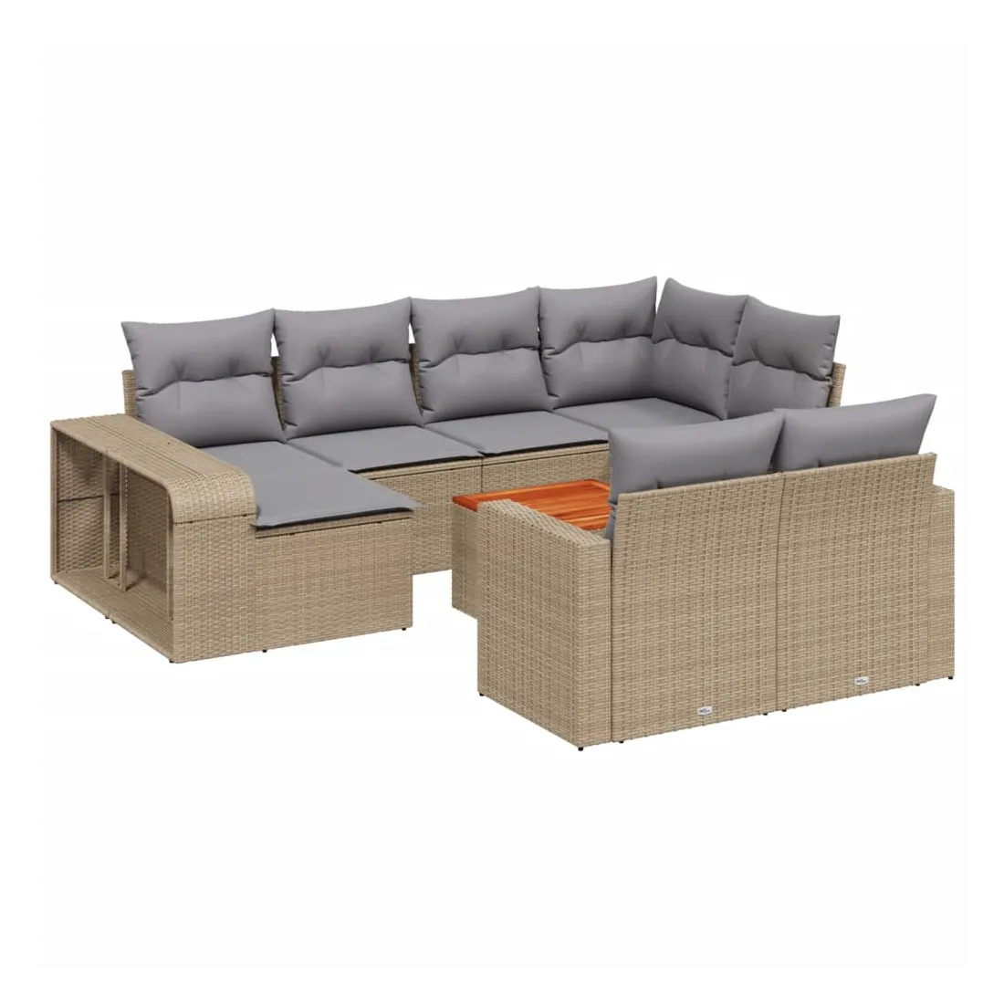 Cet ensemble de canapés de jardin est le complément parfait de votre arrière-cour, terrasse ou patio, offrant un espace confortable et accueillant pour discuter avec la famille et les amis ou simplement se détendre et profiter de l'extérieur. Matériau durable : la résine tressée, également connue sous le nom de poly rotin, est un matériau synthétique solide et nécessitant peu d'entretien qui ressemble au rotin naturel. Il est léger, facile à nettoyer et couramment utilisé pour les meubles d'extérieur en raison de sa durabilité et de ses propriétés de résistance aux intempéries.Dessus stable et facile à nettoyer : cette table de jardin a un dessus en bois d'acacia robuste, durable et facile à nettoyer avec un chiffon humide.Expérience d'assise confortable : ce canapé d'extérieur, doté de coussins épais, offre une expérience d'assise confortable.Housse amovible et lavable : ces coussins de siège sont dotés de housses amovibles pour un lavage et un entretien faciles.Conception modulaire : cet ensemble de meubles d'extérieur a une conception modulaire, ce qui le rend complètement flexible et facile à déplacer, afin que vous puissiez créer un agencement de meubles d'extérieur personnalisé. Bon à savoir :Pour que vos meubles d'extérieur restent beaux, nous vous recommandons de les protéger avec une housse imperméable.