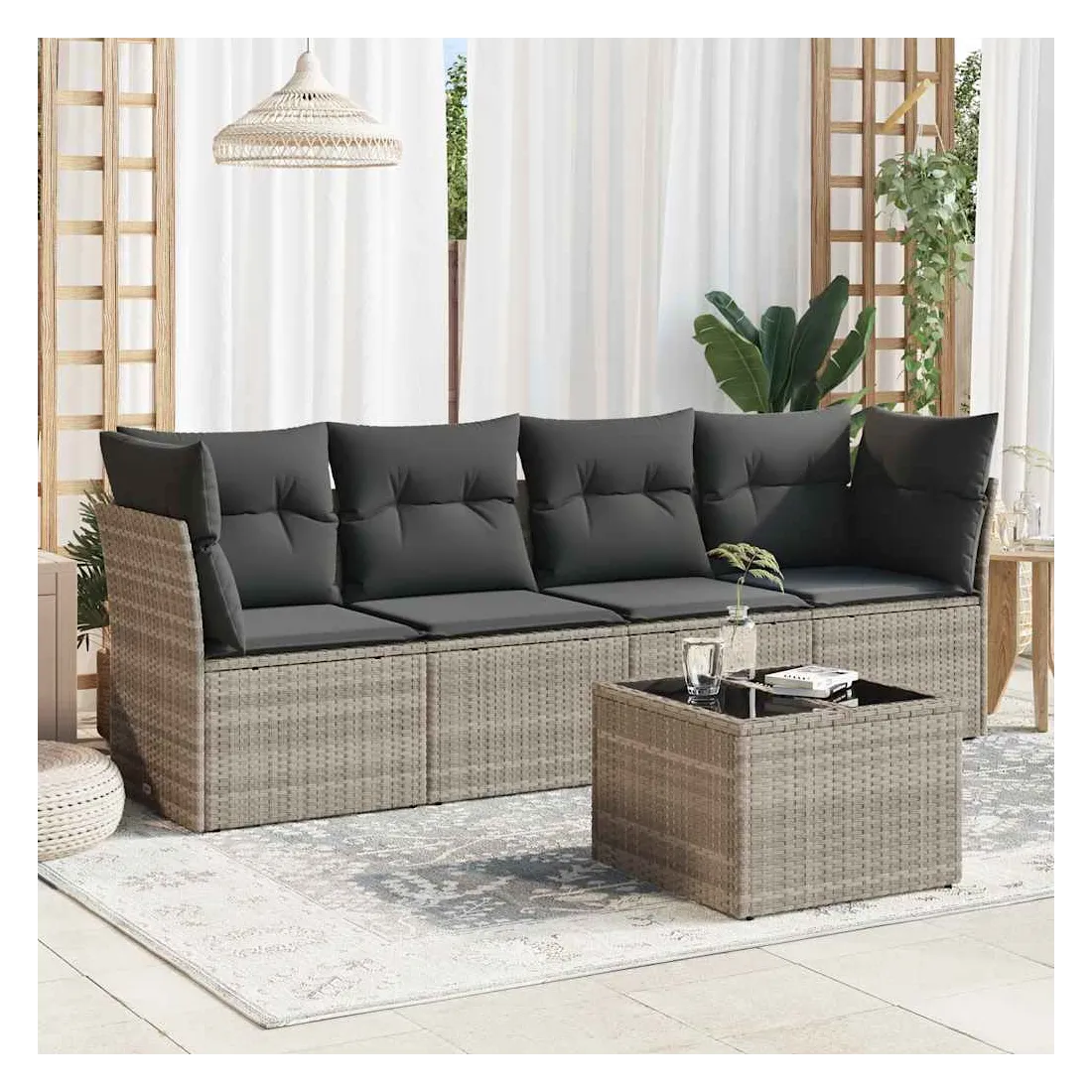Cet ensemble de canapés de jardin est le complément parfait de votre arrière-cour, terrasse ou patio, offrant un espace confortable et accueillant pour discuter avec la famille et les amis ou simplement se détendre et profiter de l'extérieur. Matériau durable : la résine tressée, également connue sous le nom de poly rotin, est un matériau synthétique solide et nécessitant peu d'entretien qui ressemble au rotin naturel. Il est léger, facile à nettoyer et couramment utilisé pour les meubles d'extérieur en raison de sa durabilité et de ses propriétés de résistance aux intempéries.Fonction de rangement avec sac résistant à l'eau : chaque siège de jardin dispose d'un espace de rangement sous l'assise, complété par un sac résistant à l'eau pour ranger les coussins, les jouets et d'autres objets. Les sacs intérieurs sont dotés d'un couvercle et peuvent être solidement fixés aux sièges à l'aide de bandes auto-agrippantes pour plus de stabilité.Dessus en verre : le dessus de la table d'extérieur est fabriqué en verre trempé solide et durable, ce qui le rend facile à nettoyer avec un chiffon humide et ajoute une touche d'élégance à votre espace extérieur.Housse amovible et lavable : ces coussins de siège sont dotés de housses amovibles pour un lavage et un entretien faciles.Conception modulaire : cet ensemble de meubles d'extérieur a une conception modulaire, ce qui le rend complètement flexible et facile à déplacer, afin que vous puissiez créer un agencement de meubles d'extérieur personnalisé. Bon à savoir :Pour que vos meubles d'extérieur restent beaux, nous vous recommandons de les protéger avec une housse imperméable.