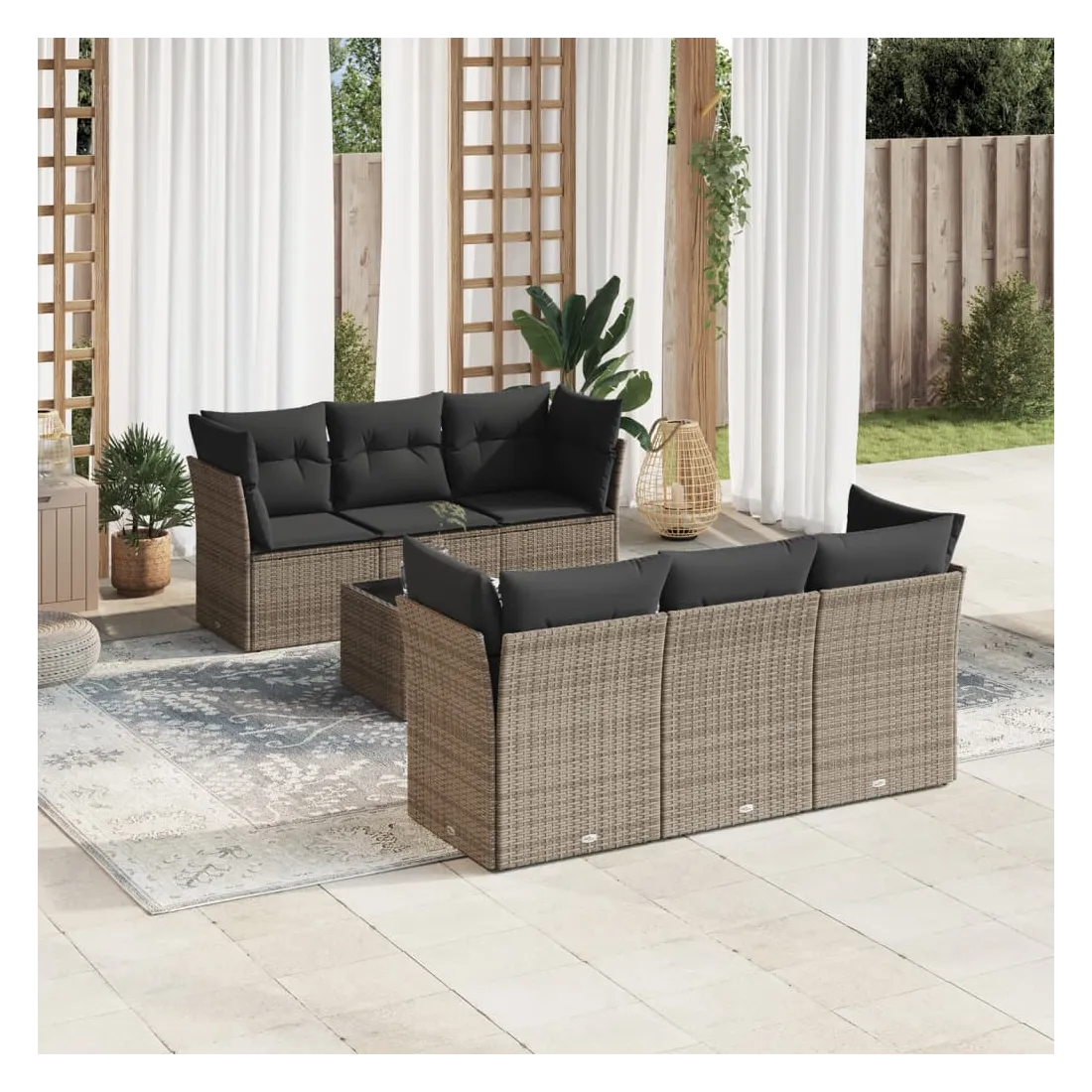 Cet ensemble de canapés de jardin est le complément parfait de votre arrière-cour, terrasse ou patio, offrant un espace confortable et accueillant pour discuter avec la famille et les amis ou simplement se détendre et profiter de l'extérieur. Matériau durable : la résine tressée, également connue sous le nom de poly rotin, est un matériau synthétique solide et nécessitant peu d'entretien qui ressemble au rotin naturel. Il est léger, facile à nettoyer et couramment utilisé pour les meubles d'extérieur en raison de sa durabilité et de ses propriétés de résistance aux intempéries.Fonction de rangement avec sac résistant à l'eau : chaque siège de jardin dispose d'un espace de rangement sous l'assise, complété par un sac résistant à l'eau pour ranger les coussins, les jouets et d'autres objets. Les sacs intérieurs sont dotés d'un couvercle et peuvent être solidement fixés aux sièges à l'aide de bandes auto-agrippantes pour plus de stabilité.Dessus en verre : le dessus de la table d'extérieur est fabriqué en verre trempé solide et durable, ce qui le rend facile à nettoyer avec un chiffon humide et ajoute une touche d'élégance à votre espace extérieur.Housse amovible et lavable : ces coussins de siège sont dotés de housses amovibles pour un lavage et un entretien faciles.Conception modulaire : cet ensemble de meubles d'extérieur a une conception modulaire, ce qui le rend complètement flexible et facile à déplacer, afin que vous puissiez créer un agencement de meubles d'extérieur personnalisé. Bon à savoir :Pour que vos meubles d'extérieur restent beaux, nous vous recommandons de les protéger avec une housse imperméable.