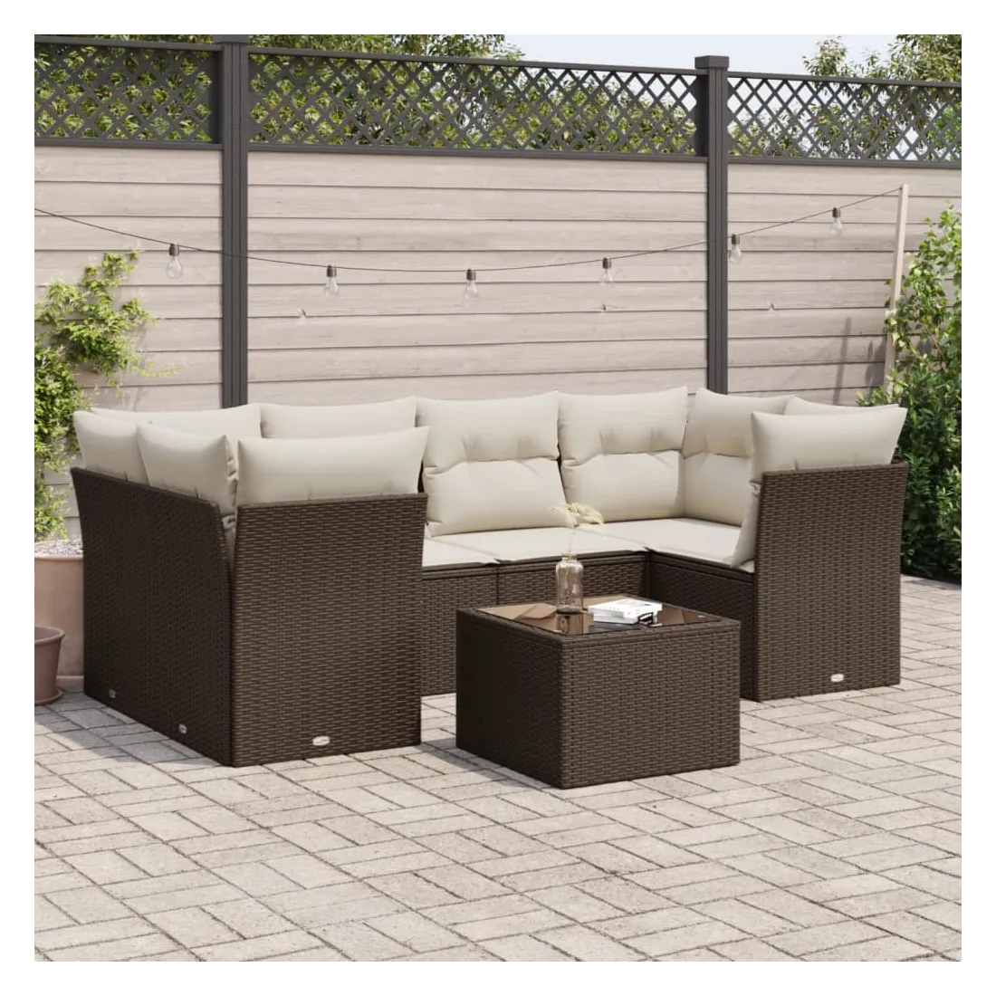 Cet ensemble de canapés de jardin est le complément parfait de votre arrière-cour, terrasse ou patio, offrant un espace confortable et accueillant pour discuter avec la famille et les amis ou simplement se détendre et profiter de l'extérieur. Matériau durable : la résine tressée, également connue sous le nom de poly rotin, est un matériau synthétique solide et nécessitant peu d'entretien qui ressemble au rotin naturel. Il est léger, facile à nettoyer et couramment utilisé pour les meubles d'extérieur en raison de sa durabilité et de ses propriétés de résistance aux intempéries.Fonction de rangement avec sac résistant à l'eau : chaque siège de jardin dispose d'un espace de rangement sous l'assise, complété par un sac résistant à l'eau pour ranger les coussins, les jouets et d'autres objets. Les sacs intérieurs sont dotés d'un couvercle et peuvent être solidement fixés aux sièges à l'aide de bandes auto-agrippantes pour plus de stabilité.Dessus en verre : le dessus de la table d'extérieur est fabriqué en verre trempé solide et durable, ce qui le rend facile à nettoyer avec un chiffon humide et ajoute une touche d'élégance à votre espace extérieur.Housse amovible et lavable : ces coussins de siège sont dotés de housses amovibles pour un lavage et un entretien faciles.Conception modulaire : cet ensemble de meubles d'extérieur a une conception modulaire, ce qui le rend complètement flexible et facile à déplacer, afin que vous puissiez créer un agencement de meubles d'extérieur personnalisé. Bon à savoir :Pour que vos meubles d'extérieur restent beaux, nous vous recommandons de les protéger avec une housse imperméable.
