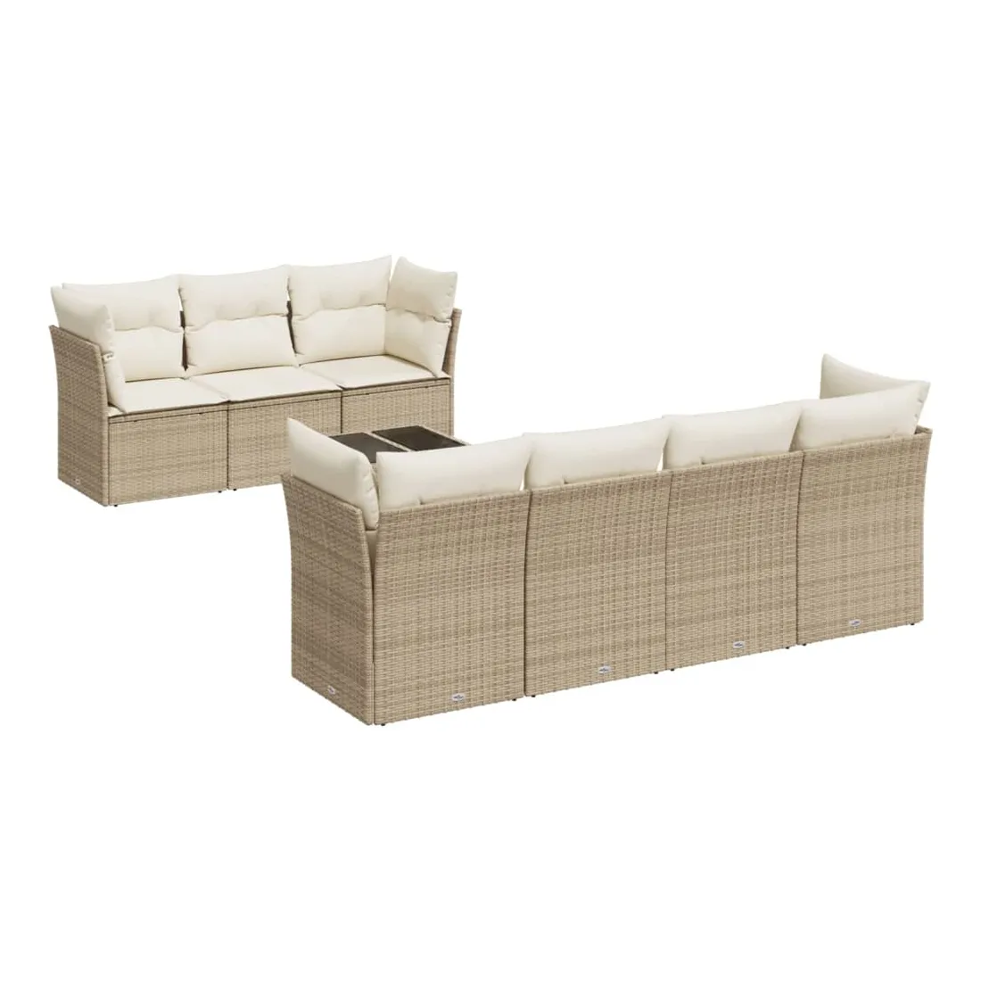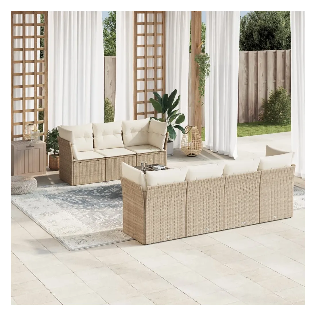 Cet ensemble de canapés de jardin est le complément parfait de votre arrière-cour, terrasse ou patio, offrant un espace confortable et accueillant pour discuter avec la famille et les amis ou simplement se détendre et profiter de l'extérieur. Matériau durable : la résine tressée, également connue sous le nom de poly rotin, est un matériau synthétique solide et nécessitant peu d'entretien qui ressemble au rotin naturel. Il est léger, facile à nettoyer et couramment utilisé pour les meubles d'extérieur en raison de sa durabilité et de ses propriétés de résistance aux intempéries.Fonction de rangement avec sac résistant à l'eau : chaque siège de jardin dispose d'un espace de rangement sous l'assise, complété par un sac résistant à l'eau pour ranger les coussins, les jouets et d'autres objets. Les sacs intérieurs sont dotés d'un couvercle et peuvent être solidement fixés aux sièges à l'aide de bandes auto-agrippantes pour plus de stabilité.Dessus en verre : le dessus de la table d'extérieur est fabriqué en verre trempé solide et durable, ce qui le rend facile à nettoyer avec un chiffon humide et ajoute une touche d'élégance à votre espace extérieur.Housse amovible et lavable : ces coussins de siège sont dotés de housses amovibles pour un lavage et un entretien faciles.Conception modulaire : cet ensemble de meubles d'extérieur a une conception modulaire, ce qui le rend complètement flexible et facile à déplacer, afin que vous puissiez créer un agencement de meubles d'extérieur personnalisé. Bon à savoir :Pour que vos meubles d'extérieur restent beaux, nous vous recommandons de les protéger avec une housse imperméable.