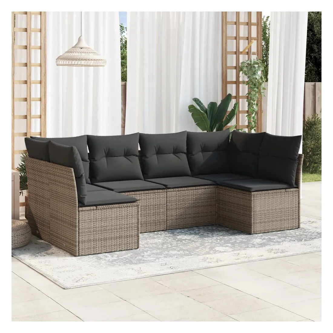 Cet ensemble de canapés de jardin est le complément parfait de votre arrière-cour, terrasse ou patio, offrant un espace confortable et accueillant pour discuter avec la famille et les amis ou simplement se détendre et profiter de l'extérieur. Matériau durable : la résine tressée, également connue sous le nom de poly rotin, est un matériau synthétique solide et nécessitant peu d'entretien qui ressemble au rotin naturel. Il est léger, facile à nettoyer et couramment utilisé pour les meubles d'extérieur en raison de sa durabilité et de ses propriétés de résistance aux intempéries.Fonction de rangement avec sac résistant à l'eau : chaque siège de jardin dispose d'un espace de rangement sous l'assise, complété par un sac résistant à l'eau pour ranger les coussins, les jouets et d'autres objets. Les sacs intérieurs sont dotés d'un couvercle et peuvent être solidement fixés aux sièges à l'aide de bandes auto-agrippantes pour plus de stabilité.Housse amovible et lavable : ces coussins de siège sont dotés de housses amovibles pour un lavage et un entretien faciles.Conception modulaire : cet ensemble de meubles d'extérieur a une conception modulaire, ce qui le rend complètement flexible et facile à déplacer, afin que vous puissiez créer un agencement de meubles d'extérieur personnalisé. Bon à savoir :Pour que vos meubles d'extérieur restent beaux, nous vous recommandons de les protéger avec une housse imperméable.