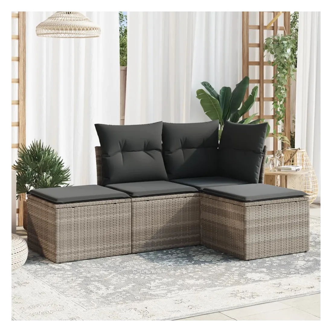 Cet ensemble de canapés de jardin est le complément parfait de votre arrière-cour, terrasse ou patio, offrant un espace confortable et accueillant pour discuter avec la famille et les amis ou simplement se détendre et profiter de l'extérieur. Matériau durable : la résine tressée, également connue sous le nom de poly rotin, est un matériau synthétique solide et nécessitant peu d'entretien qui ressemble au rotin naturel. Il est léger, facile à nettoyer et couramment utilisé pour les meubles d'extérieur en raison de sa durabilité et de ses propriétés de résistance aux intempéries.Fonction de rangement avec sac résistant à l'eau : chaque siège de jardin dispose d'un espace de rangement sous l'assise, complété par un sac résistant à l'eau pour ranger les coussins, les jouets et d'autres objets. Les sacs intérieurs sont dotés d'un couvercle et peuvent être solidement fixés aux sièges à l'aide de bandes auto-agrippantes pour plus de stabilité.Housse amovible et lavable : ces coussins de siège sont dotés de housses amovibles pour un lavage et un entretien faciles.Conception modulaire : cet ensemble de meubles d'extérieur a une conception modulaire, ce qui le rend complètement flexible et facile à déplacer, afin que vous puissiez créer un agencement de meubles d'extérieur personnalisé. Bon à savoir :Pour que vos meubles d'extérieur restent beaux, nous vous recommandons de les protéger avec une housse imperméable.
