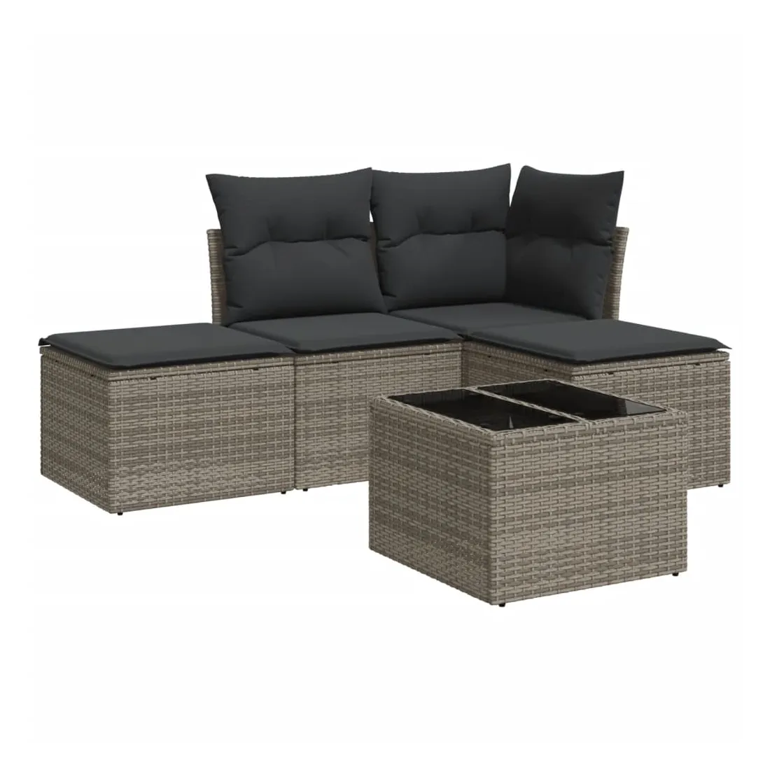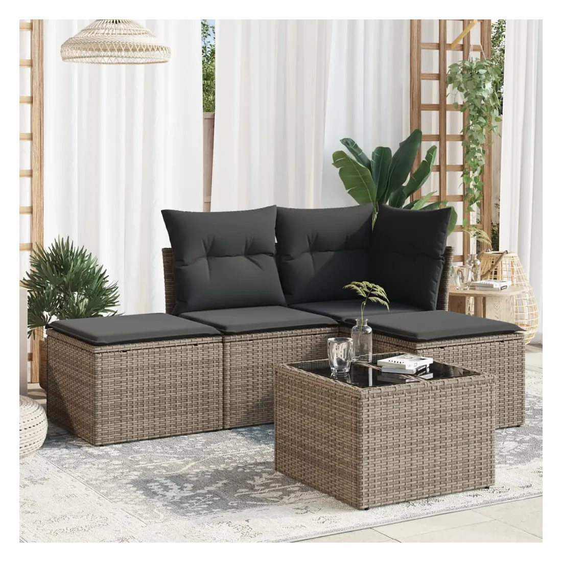 Cet ensemble de canapés de jardin est le complément parfait de votre arrière-cour, terrasse ou patio, offrant un espace confortable et accueillant pour discuter avec la famille et les amis ou simplement se détendre et profiter de l'extérieur. Matériau durable : la résine tressée, également connue sous le nom de poly rotin, est un matériau synthétique solide et nécessitant peu d'entretien qui ressemble au rotin naturel. Il est léger, facile à nettoyer et couramment utilisé pour les meubles d'extérieur en raison de sa durabilité et de ses propriétés de résistance aux intempéries.Fonction de rangement avec sac résistant à l'eau : chaque siège de jardin dispose d'un espace de rangement sous l'assise, complété par un sac résistant à l'eau pour ranger les coussins, les jouets et d'autres objets. Les sacs intérieurs sont dotés d'un couvercle et peuvent être solidement fixés aux sièges à l'aide de bandes auto-agrippantes pour plus de stabilité.Dessus en verre : le dessus de la table d'extérieur est fabriqué en verre trempé solide et durable, ce qui le rend facile à nettoyer avec un chiffon humide et ajoute une touche d'élégance à votre espace extérieur.Housse amovible et lavable : ces coussins de siège sont dotés de housses amovibles pour un lavage et un entretien faciles.Conception modulaire : cet ensemble de meubles d'extérieur a une conception modulaire, ce qui le rend complètement flexible et facile à déplacer, afin que vous puissiez créer un agencement de meubles d'extérieur personnalisé. Bon à savoir :Pour que vos meubles d'extérieur restent beaux, nous vous recommandons de les protéger avec une housse imperméable.