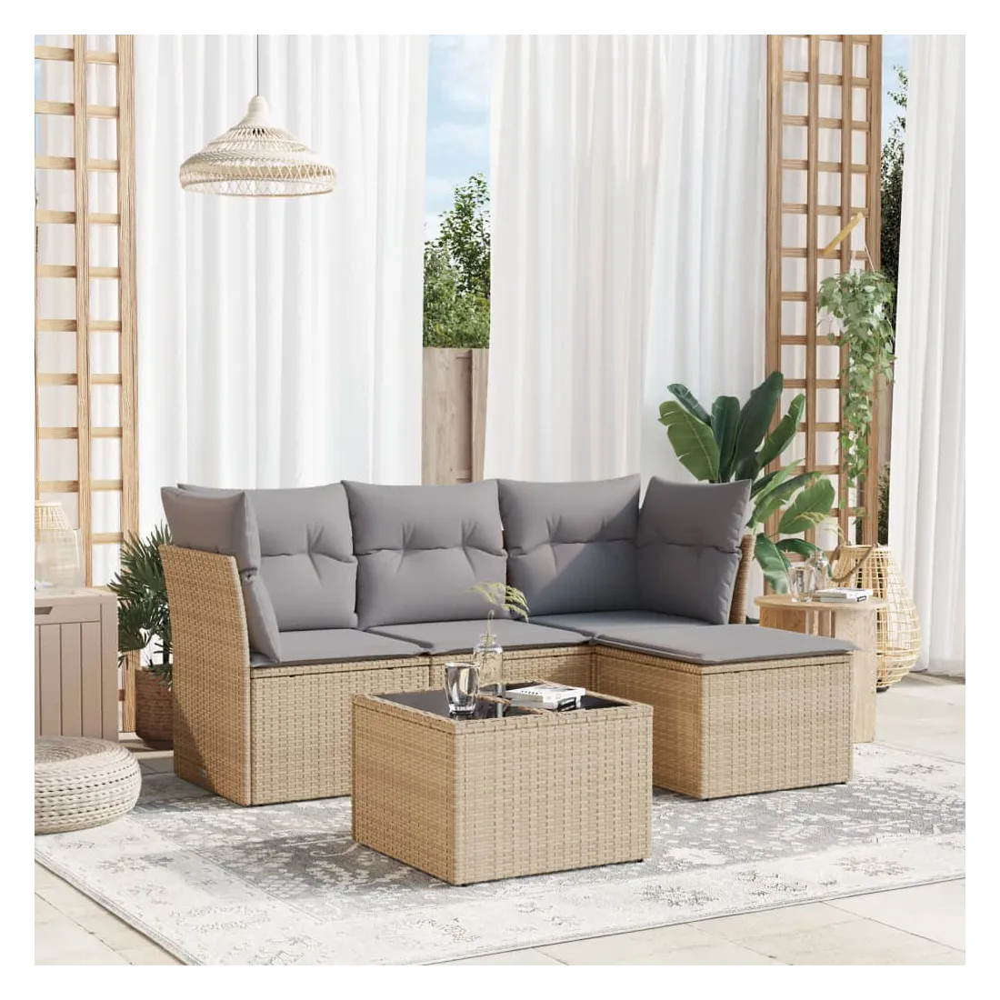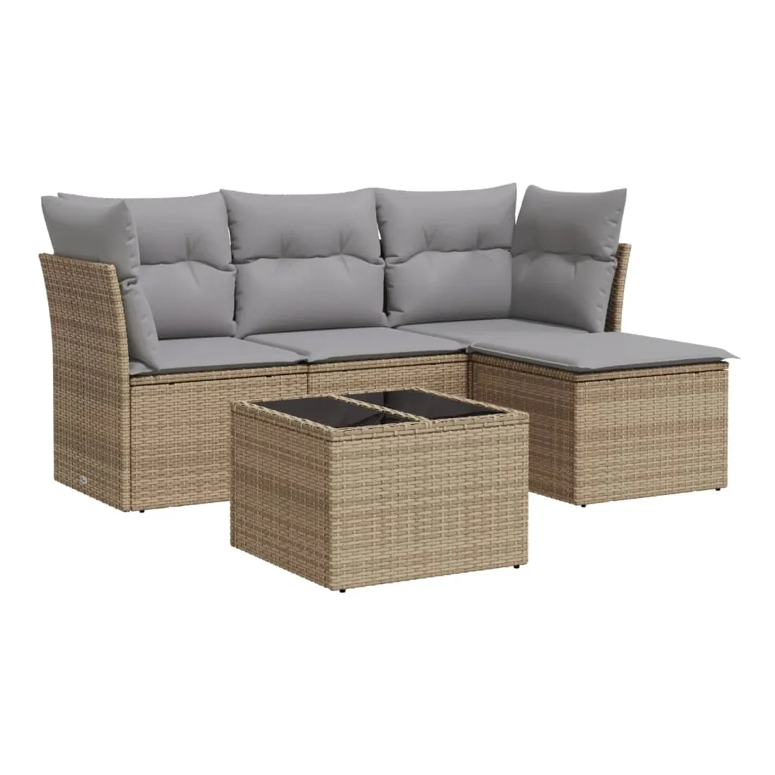 Cet ensemble de canapés de jardin est le complément parfait de votre arrière-cour, terrasse ou patio, offrant un espace confortable et accueillant pour discuter avec la famille et les amis ou simplement se détendre et profiter de l'extérieur. Matériau durable : la résine tressée, également connue sous le nom de poly rotin, est un matériau synthétique solide et nécessitant peu d'entretien qui ressemble au rotin naturel. Il est léger, facile à nettoyer et couramment utilisé pour les meubles d'extérieur en raison de sa durabilité et de ses propriétés de résistance aux intempéries.Fonction de rangement avec sac résistant à l'eau : chaque siège de jardin dispose d'un espace de rangement sous l'assise, complété par un sac résistant à l'eau pour ranger les coussins, les jouets et d'autres objets. Les sacs intérieurs sont dotés d'un couvercle et peuvent être solidement fixés aux sièges à l'aide de bandes auto-agrippantes pour plus de stabilité.Dessus en verre : le dessus de la table d'extérieur est fabriqué en verre trempé solide et durable, ce qui le rend facile à nettoyer avec un chiffon humide et ajoute une touche d'élégance à votre espace extérieur.Housse amovible et lavable : ces coussins de siège sont dotés de housses amovibles pour un lavage et un entretien faciles.Conception modulaire : cet ensemble de meubles d'extérieur a une conception modulaire, ce qui le rend complètement flexible et facile à déplacer, afin que vous puissiez créer un agencement de meubles d'extérieur personnalisé. Bon à savoir :Pour que vos meubles d'extérieur restent beaux, nous vous recommandons de les protéger avec une housse imperméable.