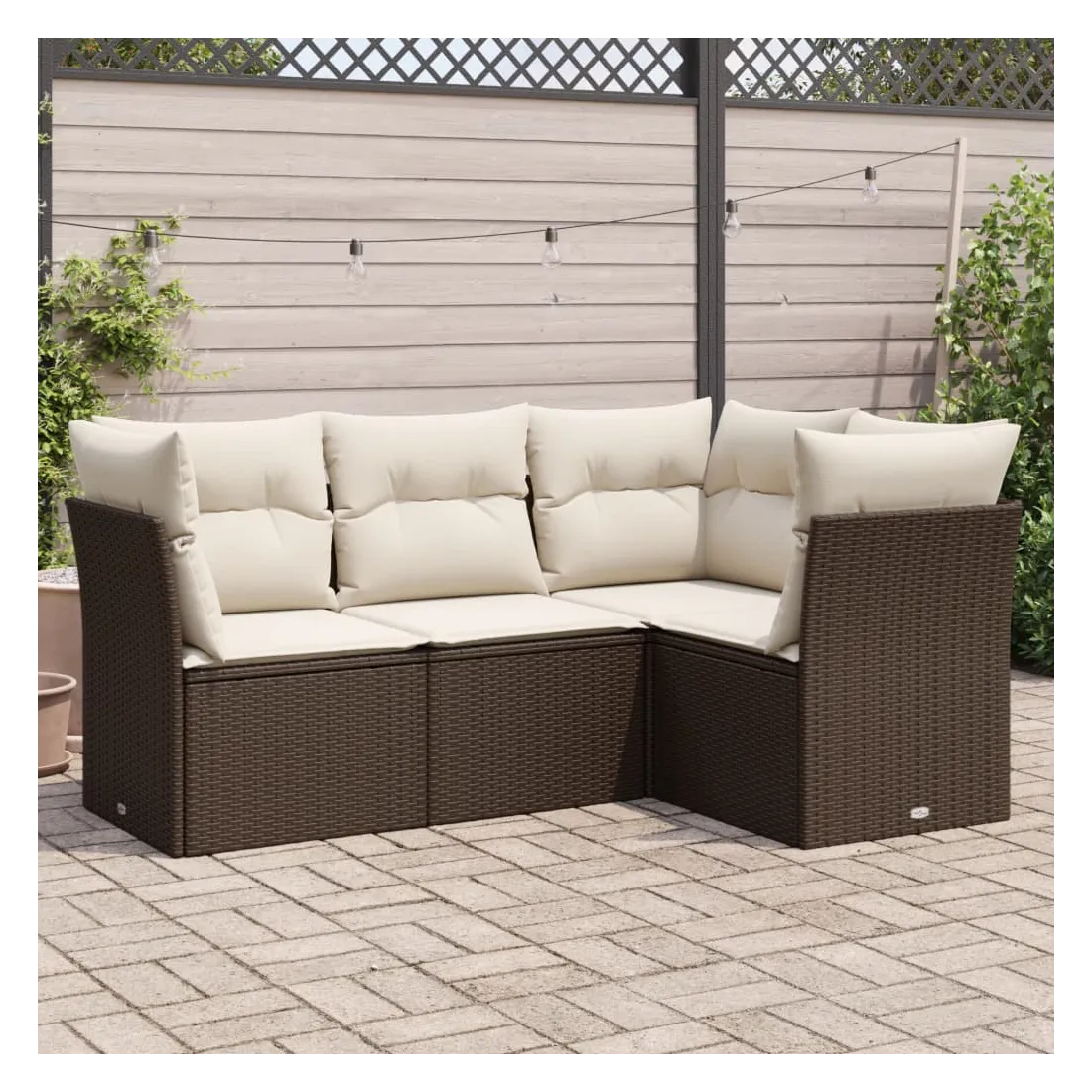 Cet ensemble de canapés de jardin est le complément parfait de votre arrière-cour, terrasse ou patio, offrant un espace confortable et accueillant pour discuter avec la famille et les amis ou simplement se détendre et profiter de l'extérieur. Matériau durable : la résine tressée, également connue sous le nom de poly rotin, est un matériau synthétique solide et nécessitant peu d'entretien qui ressemble au rotin naturel. Il est léger, facile à nettoyer et couramment utilisé pour les meubles d'extérieur en raison de sa durabilité et de ses propriétés de résistance aux intempéries.Fonction de rangement avec sac résistant à l'eau : chaque siège de jardin dispose d'un espace de rangement sous l'assise, complété par un sac résistant à l'eau pour ranger les coussins, les jouets et d'autres objets. Les sacs intérieurs sont dotés d'un couvercle et peuvent être solidement fixés aux sièges à l'aide de bandes auto-agrippantes pour plus de stabilité.Housse amovible et lavable : ces coussins de siège sont dotés de housses amovibles pour un lavage et un entretien faciles.Conception modulaire : cet ensemble de meubles d'extérieur a une conception modulaire, ce qui le rend complètement flexible et facile à déplacer, afin que vous puissiez créer un agencement de meubles d'extérieur personnalisé. Bon à savoir :Pour que vos meubles d'extérieur restent beaux, nous vous recommandons de les protéger avec une housse imperméable.