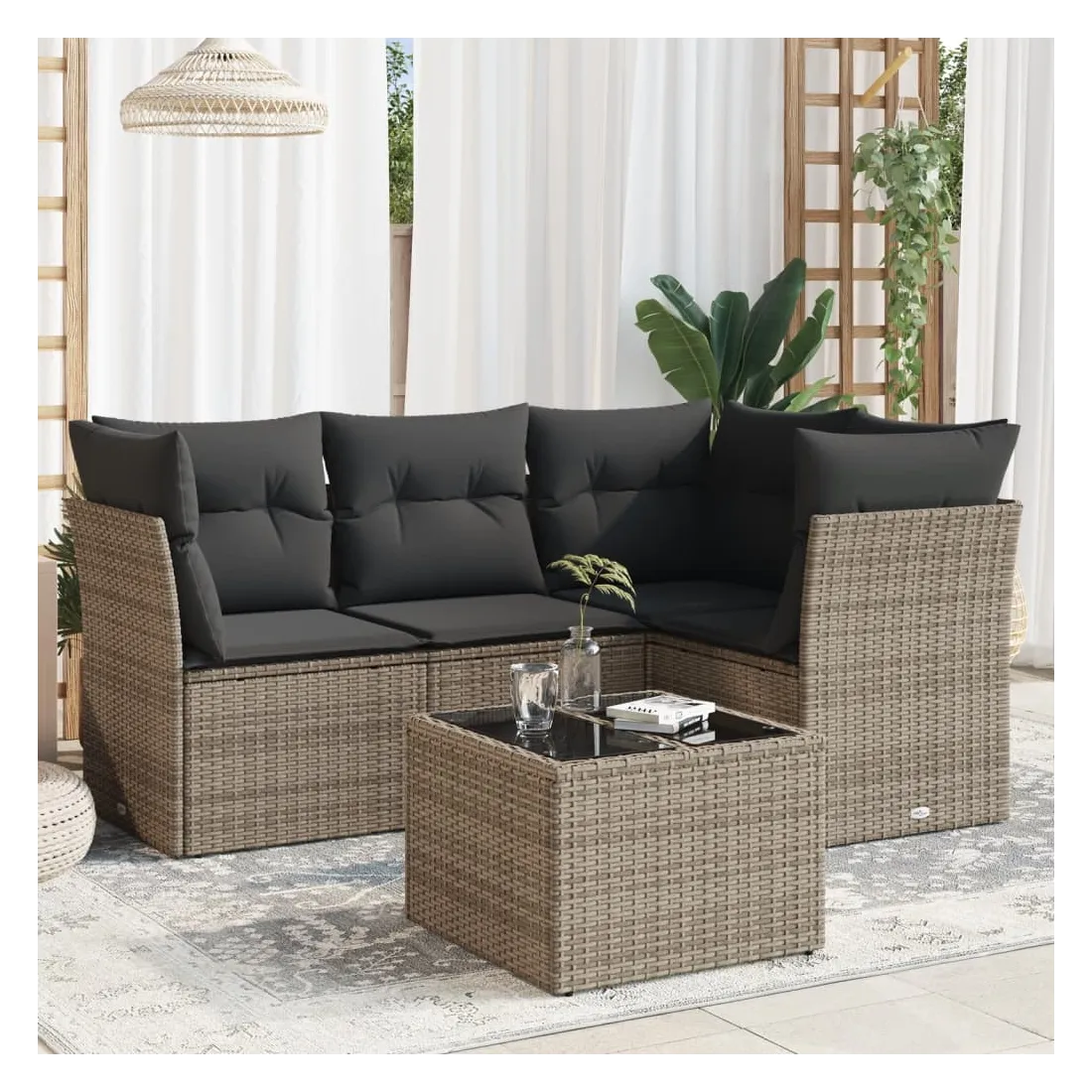 Cet ensemble de canapés de jardin est le complément parfait de votre arrière-cour, terrasse ou patio, offrant un espace confortable et accueillant pour discuter avec la famille et les amis ou simplement se détendre et profiter de l'extérieur. Matériau durable : la résine tressée, également connue sous le nom de poly rotin, est un matériau synthétique solide et nécessitant peu d'entretien qui ressemble au rotin naturel. Il est léger, facile à nettoyer et couramment utilisé pour les meubles d'extérieur en raison de sa durabilité et de ses propriétés de résistance aux intempéries.Fonction de rangement avec sac résistant à l'eau : chaque siège de jardin dispose d'un espace de rangement sous l'assise, complété par un sac résistant à l'eau pour ranger les coussins, les jouets et d'autres objets. Les sacs intérieurs sont dotés d'un couvercle et peuvent être solidement fixés aux sièges à l'aide de bandes auto-agrippantes pour plus de stabilité.Dessus en verre : le dessus de la table d'extérieur est fabriqué en verre trempé solide et durable, ce qui le rend facile à nettoyer avec un chiffon humide et ajoute une touche d'élégance à votre espace extérieur.Housse amovible et lavable : ces coussins de siège sont dotés de housses amovibles pour un lavage et un entretien faciles.Conception modulaire : cet ensemble de meubles d'extérieur a une conception modulaire, ce qui le rend complètement flexible et facile à déplacer, afin que vous puissiez créer un agencement de meubles d'extérieur personnalisé. Bon à savoir :Pour que vos meubles d'extérieur restent beaux, nous vous recommandons de les protéger avec une housse imperméable.
