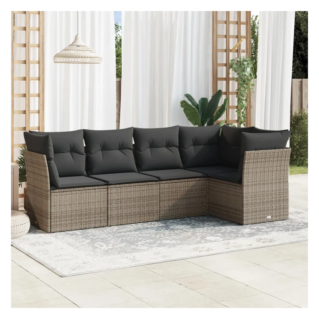 Cet ensemble de canapés de jardin est le complément parfait de votre arrière-cour, terrasse ou patio, offrant un espace confortable et accueillant pour discuter avec la famille et les amis ou simplement se détendre et profiter de l'extérieur. Matériau durable : la résine tressée, également connue sous le nom de poly rotin, est un matériau synthétique solide et nécessitant peu d'entretien qui ressemble au rotin naturel. Il est léger, facile à nettoyer et couramment utilisé pour les meubles d'extérieur en raison de sa durabilité et de ses propriétés de résistance aux intempéries.Fonction de rangement avec sac résistant à l'eau : chaque siège de jardin dispose d'un espace de rangement sous l'assise, complété par un sac résistant à l'eau pour ranger les coussins, les jouets et d'autres objets. Les sacs intérieurs sont dotés d'un couvercle et peuvent être solidement fixés aux sièges à l'aide de bandes auto-agrippantes pour plus de stabilité.Housse amovible et lavable : ces coussins de siège sont dotés de housses amovibles pour un lavage et un entretien faciles.Conception modulaire : cet ensemble de meubles d'extérieur a une conception modulaire, ce qui le rend complètement flexible et facile à déplacer, afin que vous puissiez créer un agencement de meubles d'extérieur personnalisé. Bon à savoir :Pour que vos meubles d'extérieur restent beaux, nous vous recommandons de les protéger avec une housse imperméable.