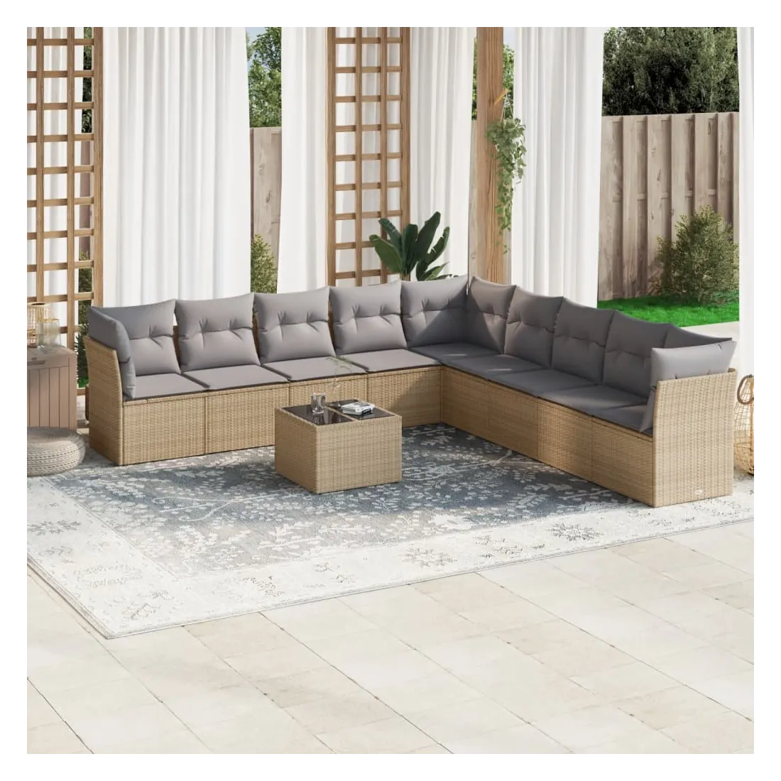 Cet ensemble de canapés de jardin est le complément parfait de votre arrière-cour, terrasse ou patio, offrant un espace confortable et accueillant pour discuter avec la famille et les amis ou simplement se détendre et profiter de l'extérieur. Matériau durable : la résine tressée, également connue sous le nom de poly rotin, est un matériau synthétique solide et nécessitant peu d'entretien qui ressemble au rotin naturel. Il est léger, facile à nettoyer et couramment utilisé pour les meubles d'extérieur en raison de sa durabilité et de ses propriétés de résistance aux intempéries.Fonction de rangement avec sac résistant à l'eau : chaque siège de jardin dispose d'un espace de rangement sous l'assise, complété par un sac résistant à l'eau pour ranger les coussins, les jouets et d'autres objets. Les sacs intérieurs sont dotés d'un couvercle et peuvent être solidement fixés aux sièges à l'aide de bandes auto-agrippantes pour plus de stabilité.Dessus en verre : le dessus de la table d'extérieur est fabriqué en verre trempé solide et durable, ce qui le rend facile à nettoyer avec un chiffon humide et ajoute une touche d'élégance à votre espace extérieur.Housse amovible et lavable : ces coussins de siège sont dotés de housses amovibles pour un lavage et un entretien faciles.Conception modulaire : cet ensemble de meubles d'extérieur a une conception modulaire, ce qui le rend complètement flexible et facile à déplacer, afin que vous puissiez créer un agencement de meubles d'extérieur personnalisé. Bon à savoir :Pour que vos meubles d'extérieur restent beaux, nous vous recommandons de les protéger avec une housse imperméable.