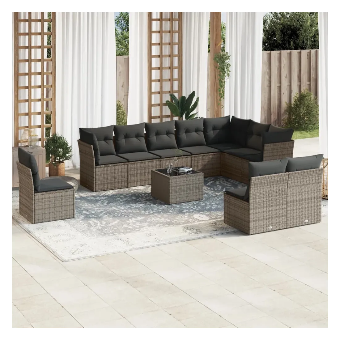 Cet ensemble de canapés de jardin est le complément parfait de votre arrière-cour, terrasse ou patio, offrant un espace confortable et accueillant pour discuter avec la famille et les amis ou simplement se détendre et profiter de l'extérieur. Matériau durable : la résine tressée, également connue sous le nom de poly rotin, est un matériau synthétique solide et nécessitant peu d'entretien qui ressemble au rotin naturel. Il est léger, facile à nettoyer et couramment utilisé pour les meubles d'extérieur en raison de sa durabilité et de ses propriétés de résistance aux intempéries.Fonction de rangement avec sac résistant à l'eau : chaque siège de jardin dispose d'un espace de rangement sous l'assise, complété par un sac résistant à l'eau pour ranger les coussins, les jouets et d'autres objets. Les sacs intérieurs sont dotés d'un couvercle et peuvent être solidement fixés aux sièges à l'aide de bandes auto-agrippantes pour plus de stabilité.Dessus en verre : le dessus de la table d'extérieur est fabriqué en verre trempé solide et durable, ce qui le rend facile à nettoyer avec un chiffon humide et ajoute une touche d'élégance à votre espace extérieur.Housse amovible et lavable : ces coussins de siège sont dotés de housses amovibles pour un lavage et un entretien faciles.Conception modulaire : cet ensemble de meubles d'extérieur a une conception modulaire, ce qui le rend complètement flexible et facile à déplacer, afin que vous puissiez créer un agencement de meubles d'extérieur personnalisé. Bon à savoir :Pour que vos meubles d'extérieur restent beaux, nous vous recommandons de les protéger avec une housse imperméable.