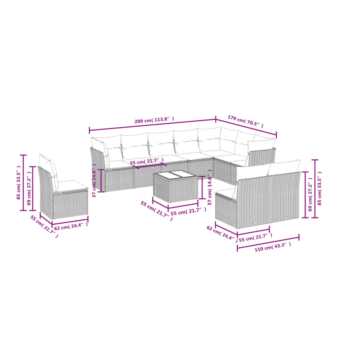 - Dimensions totales du canapé 7 places : 289 x 179 x 69 cm (l x P x H)