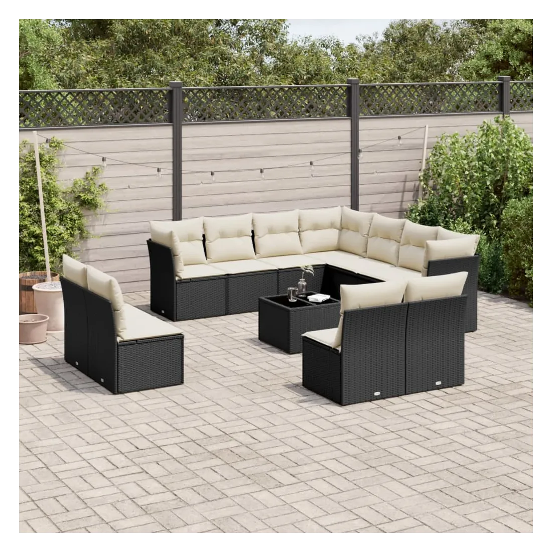 Cet ensemble de canapés de jardin est le complément parfait de votre arrière-cour, terrasse ou patio, offrant un espace confortable et accueillant pour discuter avec la famille et les amis ou simplement se détendre et profiter de l'extérieur. Matériau durable : la résine tressée, également connue sous le nom de poly rotin, est un matériau synthétique solide et nécessitant peu d'entretien qui ressemble au rotin naturel. Il est léger, facile à nettoyer et couramment utilisé pour les meubles d'extérieur en raison de sa durabilité et de ses propriétés de résistance aux intempéries.Fonction de rangement avec sac résistant à l'eau : chaque siège de jardin dispose d'un espace de rangement sous l'assise, complété par un sac résistant à l'eau pour ranger les coussins, les jouets et d'autres objets. Les sacs intérieurs sont dotés d'un couvercle et peuvent être solidement fixés aux sièges à l'aide de bandes auto-agrippantes pour plus de stabilité.Dessus en verre : le dessus de la table d'extérieur est fabriqué en verre trempé solide et durable, ce qui le rend facile à nettoyer avec un chiffon humide et ajoute une touche d'élégance à votre espace extérieur.Housse amovible et lavable : ces coussins de siège sont dotés de housses amovibles pour un lavage et un entretien faciles.Conception modulaire : cet ensemble de meubles d'extérieur a une conception modulaire, ce qui le rend complètement flexible et facile à déplacer, afin que vous puissiez créer un agencement de meubles d'extérieur personnalisé. Bon à savoir :Pour que vos meubles d'extérieur restent beaux, nous vous recommandons de les protéger avec une housse imperméable.
