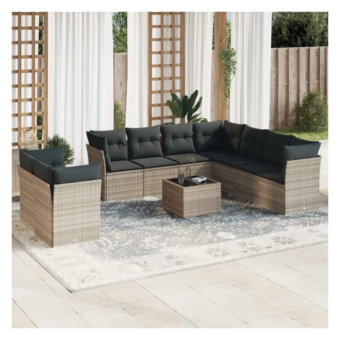 Cet ensemble de canapés de jardin est le complément parfait de votre arrière-cour, terrasse ou patio, offrant un espace confortable et accueillant pour discuter avec la famille et les amis ou simplement se détendre et profiter de l'extérieur. Matériau durable : la résine tressée, également connue sous le nom de poly rotin, est un matériau synthétique solide et nécessitant peu d'entretien qui ressemble au rotin naturel. Il est léger, facile à nettoyer et couramment utilisé pour les meubles d'extérieur en raison de sa durabilité et de ses propriétés de résistance aux intempéries.Fonction de rangement avec sac résistant à l'eau : chaque siège de jardin dispose d'un espace de rangement sous l'assise, complété par un sac résistant à l'eau pour ranger les coussins, les jouets et d'autres objets. Les sacs intérieurs sont dotés d'un couvercle et peuvent être solidement fixés aux sièges à l'aide de bandes auto-agrippantes pour plus de stabilité.Dessus en verre : le dessus de la table d'extérieur est fabriqué en verre trempé solide et durable, ce qui le rend facile à nettoyer avec un chiffon humide et ajoute une touche d'élégance à votre espace extérieur.Housse amovible et lavable : ces coussins de siège sont dotés de housses amovibles pour un lavage et un entretien faciles.Conception modulaire : cet ensemble de meubles d'extérieur a une conception modulaire, ce qui le rend complètement flexible et facile à déplacer, afin que vous puissiez créer un agencement de meubles d'extérieur personnalisé. Bon à savoir :Pour que vos meubles d'extérieur restent beaux, nous vous recommandons de les protéger avec une housse imperméable.