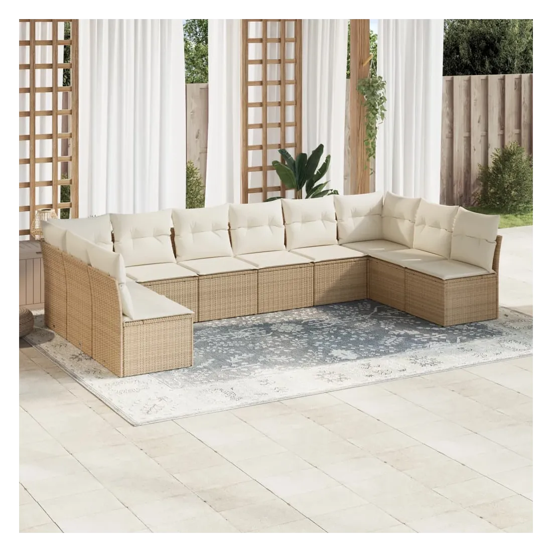 Cet ensemble de canapés de jardin est le complément parfait de votre arrière-cour, terrasse ou patio, offrant un espace confortable et accueillant pour discuter avec la famille et les amis ou simplement se détendre et profiter de l'extérieur. Matériau durable : la résine tressée, également connue sous le nom de poly rotin, est un matériau synthétique solide et nécessitant peu d'entretien qui ressemble au rotin naturel. Il est léger, facile à nettoyer et couramment utilisé pour les meubles d'extérieur en raison de sa durabilité et de ses propriétés de résistance aux intempéries.Fonction de rangement avec sac résistant à l'eau : chaque siège de jardin dispose d'un espace de rangement sous l'assise, complété par un sac résistant à l'eau pour ranger les coussins, les jouets et d'autres objets. Les sacs intérieurs sont dotés d'un couvercle et peuvent être solidement fixés aux sièges à l'aide de bandes auto-agrippantes pour plus de stabilité.Housse amovible et lavable : ces coussins de siège sont dotés de housses amovibles pour un lavage et un entretien faciles.Conception modulaire : cet ensemble de meubles d'extérieur a une conception modulaire, ce qui le rend complètement flexible et facile à déplacer, afin que vous puissiez créer un agencement de meubles d'extérieur personnalisé. Bon à savoir :Pour que vos meubles d'extérieur restent beaux, nous vous recommandons de les protéger avec une housse imperméable.