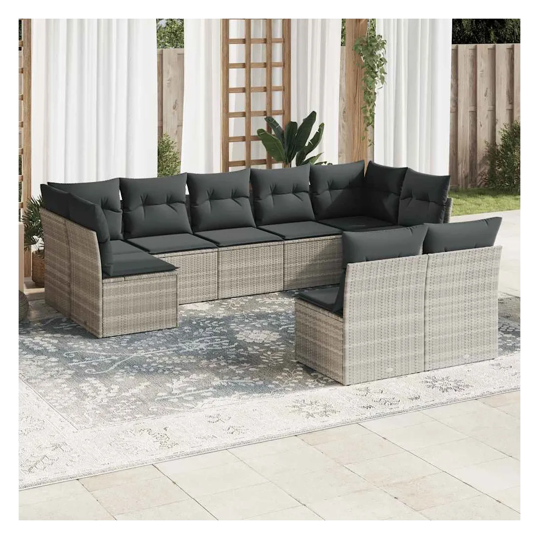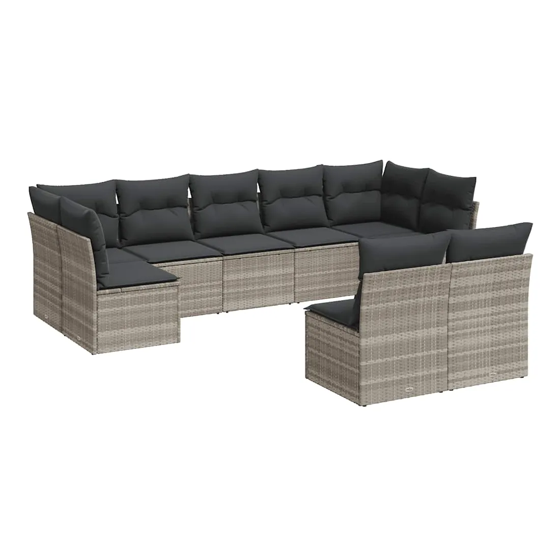 Salon de jardin 9 pcs avec coussins gris clair résine tressée