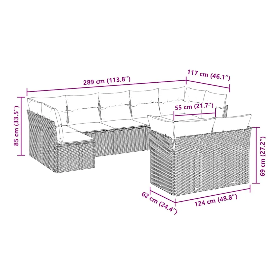 • 9 x coussin d'assise avec housse amovible et lavable