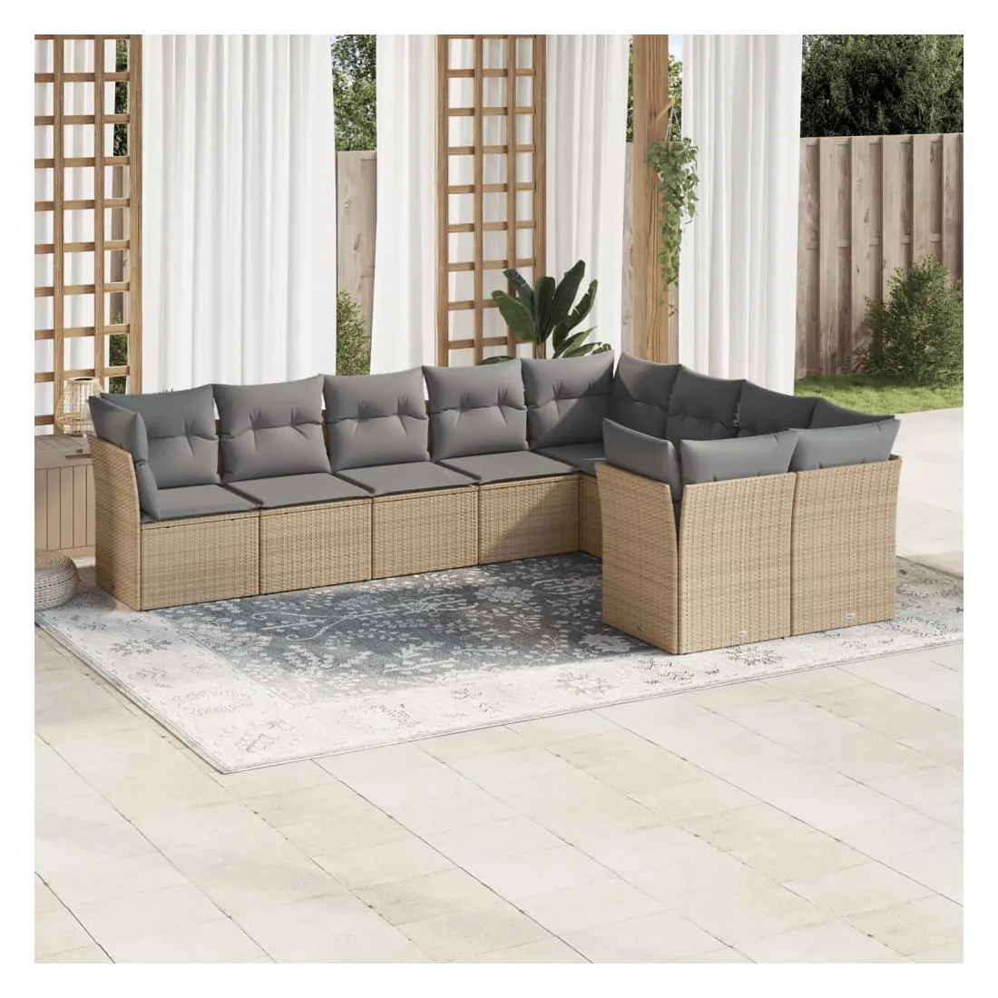 Cet ensemble de canapés de jardin est le complément parfait de votre arrière-cour, terrasse ou patio, offrant un espace confortable et accueillant pour discuter avec la famille et les amis ou simplement se détendre et profiter de l'extérieur. Matériau durable : la résine tressée, également connue sous le nom de poly rotin, est un matériau synthétique solide et nécessitant peu d'entretien qui ressemble au rotin naturel. Il est léger, facile à nettoyer et couramment utilisé pour les meubles d'extérieur en raison de sa durabilité et de ses propriétés de résistance aux intempéries.Fonction de rangement avec sac résistant à l'eau : chaque siège de jardin dispose d'un espace de rangement sous l'assise, complété par un sac résistant à l'eau pour ranger les coussins, les jouets et d'autres objets. Les sacs intérieurs sont dotés d'un couvercle et peuvent être solidement fixés aux sièges à l'aide de bandes auto-agrippantes pour plus de stabilité.Housse amovible et lavable : ces coussins de siège sont dotés de housses amovibles pour un lavage et un entretien faciles.Conception modulaire : cet ensemble de meubles d'extérieur a une conception modulaire, ce qui le rend complètement flexible et facile à déplacer, afin que vous puissiez créer un agencement de meubles d'extérieur personnalisé. Bon à savoir :Pour que vos meubles d'extérieur restent beaux, nous vous recommandons de les protéger avec une housse imperméable.