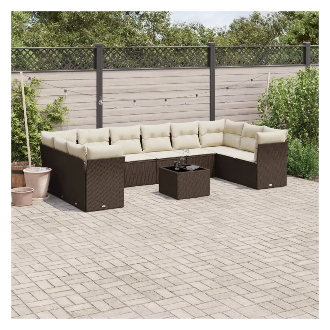 Cet ensemble de canapés de jardin est le complément parfait de votre arrière-cour, terrasse ou patio, offrant un espace confortable et accueillant pour discuter avec la famille et les amis ou simplement se détendre et profiter de l'extérieur. Matériau durable : la résine tressée, également connue sous le nom de poly rotin, est un matériau synthétique solide et nécessitant peu d'entretien qui ressemble au rotin naturel. Il est léger, facile à nettoyer et couramment utilisé pour les meubles d'extérieur en raison de sa durabilité et de ses propriétés de résistance aux intempéries.Fonction de rangement avec sac résistant à l'eau : chaque siège de jardin dispose d'un espace de rangement sous l'assise, complété par un sac résistant à l'eau pour ranger les coussins, les jouets et d'autres objets. Les sacs intérieurs sont dotés d'un couvercle et peuvent être solidement fixés aux sièges à l'aide de bandes auto-agrippantes pour plus de stabilité.Dessus en verre : le dessus de la table d'extérieur est fabriqué en verre trempé solide et durable, ce qui le rend facile à nettoyer avec un chiffon humide et ajoute une touche d'élégance à votre espace extérieur.Housse amovible et lavable : ces coussins de siège sont dotés de housses amovibles pour un lavage et un entretien faciles.Conception modulaire : cet ensemble de meubles d'extérieur a une conception modulaire, ce qui le rend complètement flexible et facile à déplacer, afin que vous puissiez créer un agencement de meubles d'extérieur personnalisé. Bon à savoir :Pour que vos meubles d'extérieur restent beaux, nous vous recommandons de les protéger avec une housse imperméable.